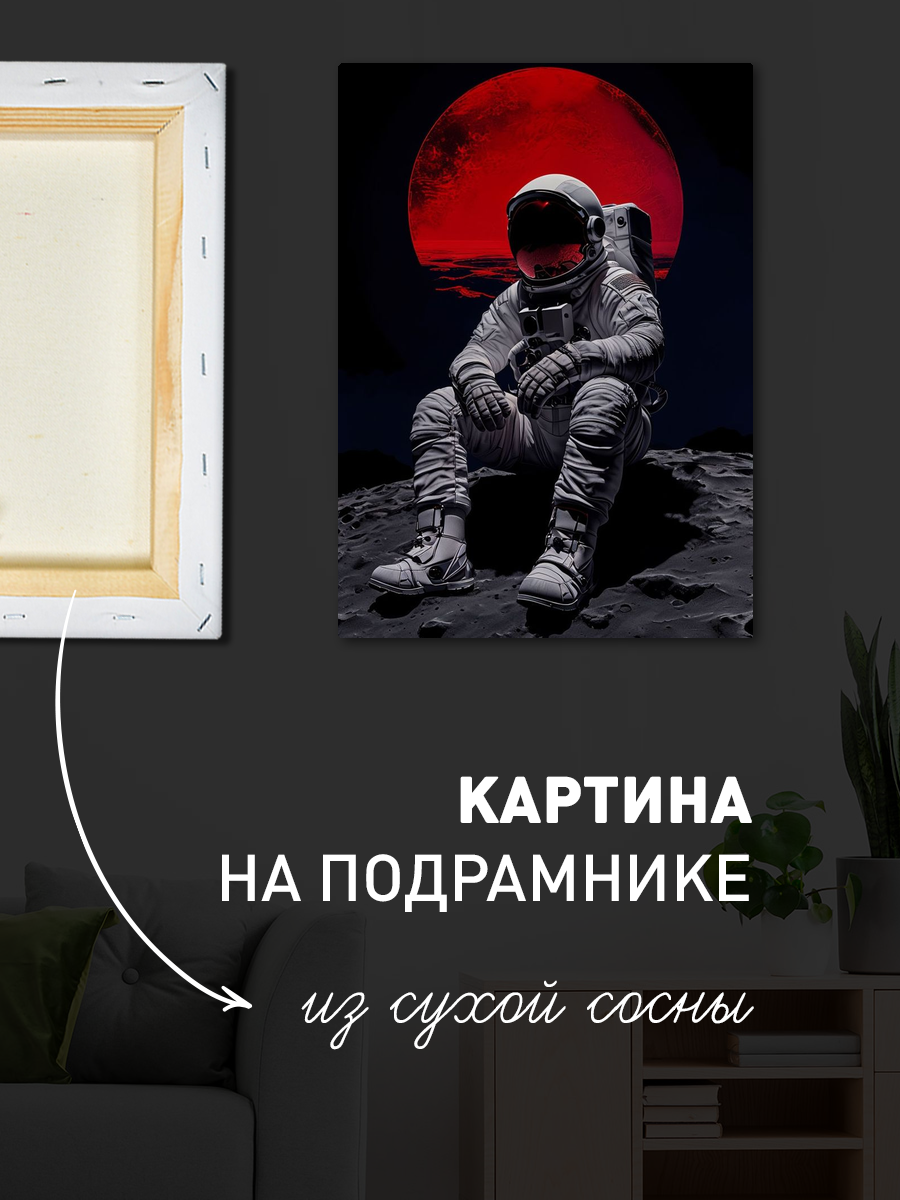 Описание: Картина 50 на 70 "Астронавт на Луне" представляет собой завораживающее изображение астронавта, сидящего на поверхности Луны под величественным красным небом. Эта картина излучает чувство одиночества и размышлений, погружая зрителя в мир космических приключений и бесконечных возможностей. Уникальность работы заключается в контрасте между белоснежным костюмом астронавта и ярким, насыщенным красным небом, что создает атмосферу таинственности и интриги. Каждый раз, глядя на эту картину, вы можете почувствовать прилив вдохновения и стремление к новым открытиям. Она вызывает эмоции удивления и восхищения, позволяя зрителю задуматься о бескрайних просторах космоса и о том, что скрыто за пределами нашей планеты. Эта работа станет не только украшением вашего интерьера, но и источником постоянного вдохновения. Эта картина идеально впишется в современные интерьеры, будь то минималистичный стиль, скандинавский или даже индустриальный. Она будет великолепно смотреться в домашнем офисе, студии или в гостиной, придавая помещению атмосферу креативности и динамичности. Также, она станет отличным подарком для любителей космоса, науки и искусства. Разместите эту картину на стене, где она сможет привлекать внимание и вызывать обсуждения, заставляя гостей восхищаться вашим стилем и вкусом.