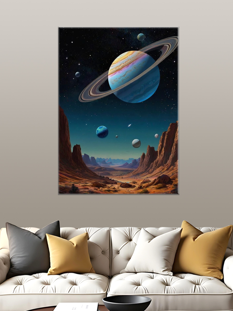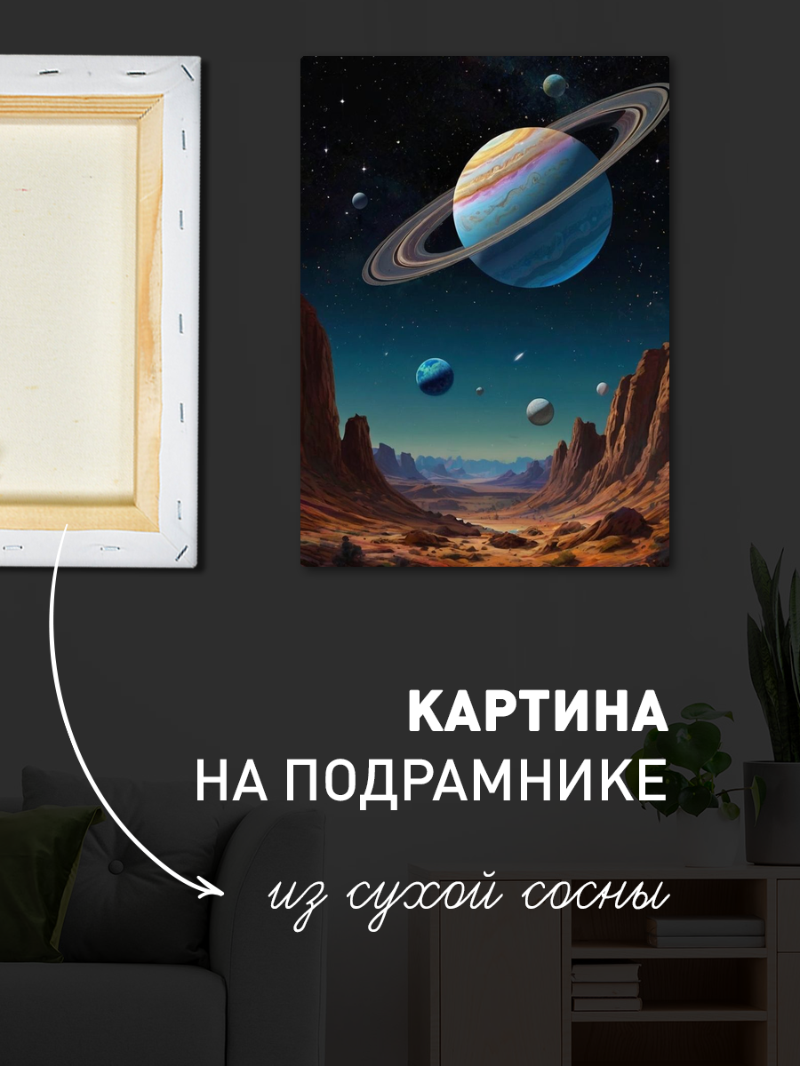 Описание: Картина 50 на 70 "Космическое путешествие". Эта уникальная работа переносит зрителя в удивительный мир космоса, где величественные планеты и звезды сверкают на фоне бескрайнего звездного неба. Основная идея картины заключается в передаче чувства бесконечности и загадочности вселенной, что делает её не только элементом декора, но и источником вдохновения. Каждый элемент картины продуман до мелочей: от ярких деталей планет до мягких цветовых переходов, создающих атмосферу спокойствия и мечтательности. Она вызывает чувство восхищения и стремления к познанию неизведанного, что дарит зрителю возможность погрузиться в свои мысли и мечты. Эта картина станет прекрасным дополнением к любому современному интерьеру. Она отлично подойдет для гостиной, кабинета или спальни, где её можно разместить на стене с минималистичной отделкой. Также она станет изюминкой в детской комнате, вдохновляя юных исследователей на изучение звезд и планет. Благодаря своему уникальному дизайну и глубокому смыслу, "Космическое путешествие" станет не просто украшением вашего дома, но и визуальным напоминанием о бескрайних возможностях, которые открывает перед нами вселенная.