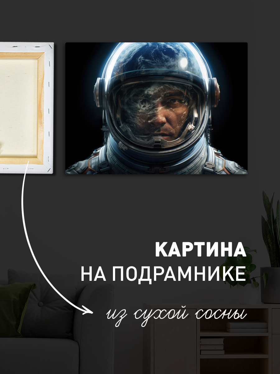 Описание: Картина 50 на 70 'Космическое созерцание' изображает загадочного астронавта с отражением Земли в шлеме. Эта работа переносит зрителя в бескрайние просторы космоса, вызывая чувство восхищения и глубокой связи с нашей планетой. Уникальность картины заключается в её способности сочетать элементы реализма и фантазии, создавая атмосферу, полную надежды и размышлений о будущем человечества. Каждый взгляд на эту картину пробуждает в душе ощущение бесконечности и стремления к новым открытиям. Астронавт, словно символ человеческой отваги и стремления к знаниям, вдохновляет на размышления о месте человека во Вселенной. Эта картина станет отличным акцентом в интерьере современного кабинета, гостиной или спальни, привнося в пространство нотки загадки и вдохновения. Она отлично подойдет как для любителей космоса, так и для тех, кто ценит глубокие философские идеи, заключенные в искусстве. 'Космическое созерцание' станет не только украшением вашего дома, но и источником ежедневного вдохновения.