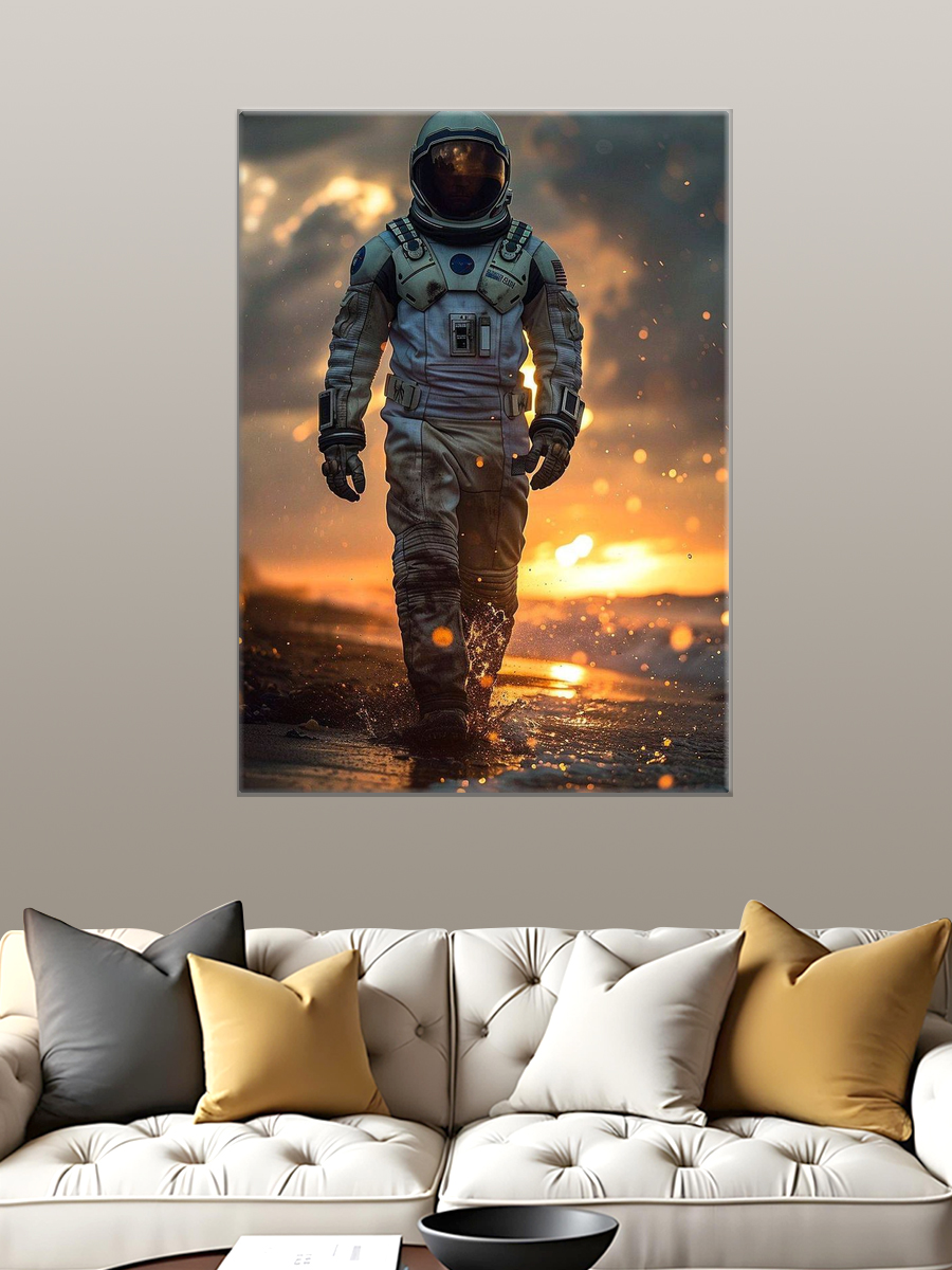 Описание: Картина 50 на 70 "Космический Путешественник" изображает астронавта, идущего по берегу в лучах заката. Основная идея картины заключается в сочетании научной фантастики и естественной красоты, что делает её уникальной. Она переносит зрителя в мир, где человек исследует не только космос, но и саму природу. Это изображение вызывает чувство удивления и вдохновения, напоминая о бескрайних возможностях и стремлении к новым открытиям. Эмоции, которые вызывает эта картина, могут варьироваться от спокойствия до восхищения. Тёплые оттенки заката, отражающиеся на воде, создают атмосферу умиротворения и гармонии, а силуэт астронавта символизирует смелость и стремление к приключениям. Эта картина станет отличным акцентом в любом интерьере, добавляя в него нотку мечтательности и фантазии. Она идеально подойдет для гостиной, кабинета или даже детской комнаты, где вдохновляющие образы помогут создать атмосферу творчества и стремления к знаниям. "Космический Путешественник" станет не только украшением вашего пространства, но и источником вдохновения для всех, кто его увидит.