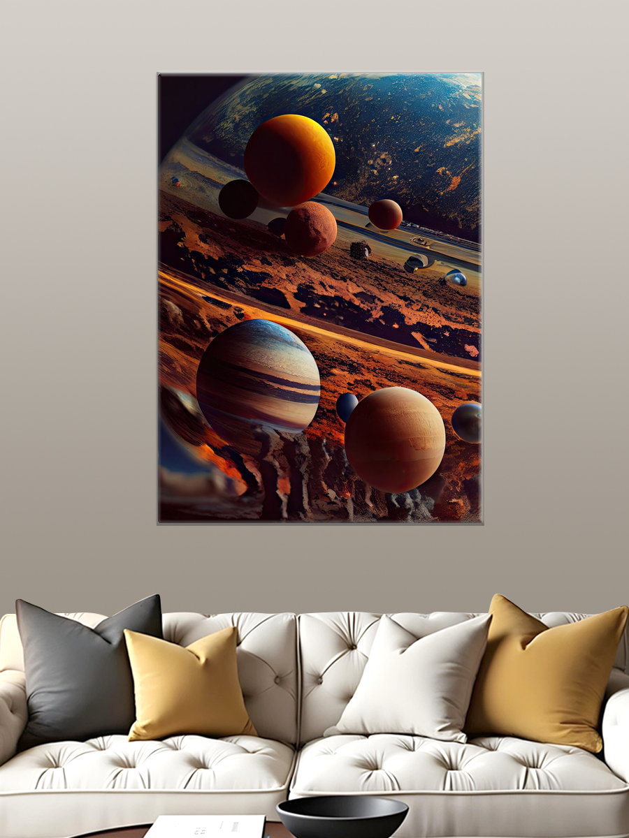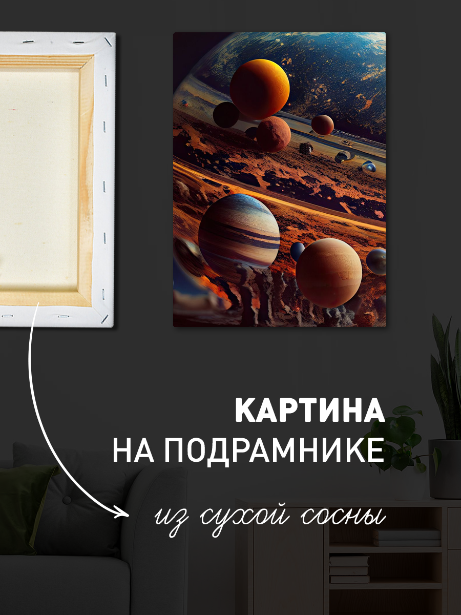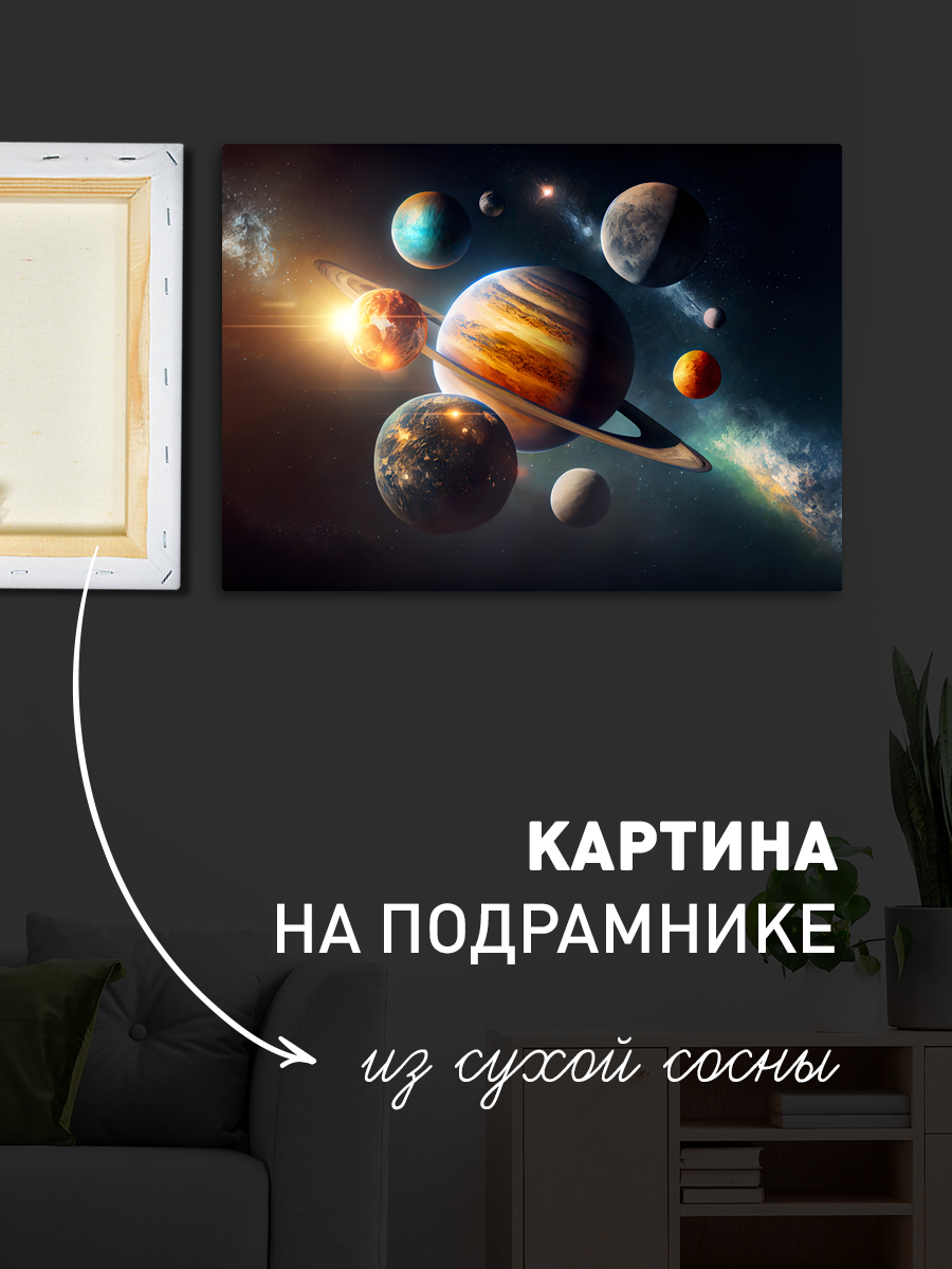 Описание: Картина 50 на 70 "Космическое путешествие". На этом удивительном холсте изображены планеты нашей солнечной системы, расположенные в бескрайних просторах космоса. Яркие цвета и детализированные текстуры создают ощущение глубины и многослойности, что делает каждую планету уникальной. Солнечные блики и звезды добавляют динамики и жизни в эту космическую сцену, заставляя зрителя задуматься о величии и загадках Вселенной. Эта картина вызывает чувства удивления и восхищения, даря зрителю возможность погрузиться в мир астрономии и мечты о далеких путешествиях. Она напоминает нам о том, насколько прекрасен и разнообразен наш космос, и вдохновляет на новые открытия. "Космическое путешествие" идеально впишется в интерьер современного дома или офиса, добавляя яркий акцент в любую комнату. Ее можно повесить в гостиной, кабинете или детской комнате, создавая атмосферу вдохновения и творчества. Это отличный выбор для любителей астрономии и космоса, а также для тех, кто ценит искусство и хочет привнести в свой дом частичку неизведанного.