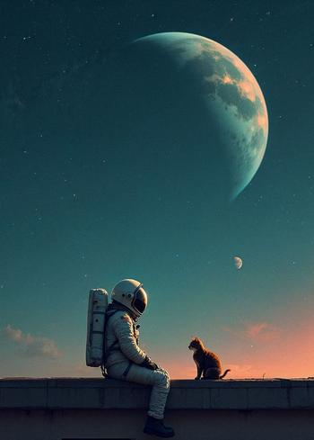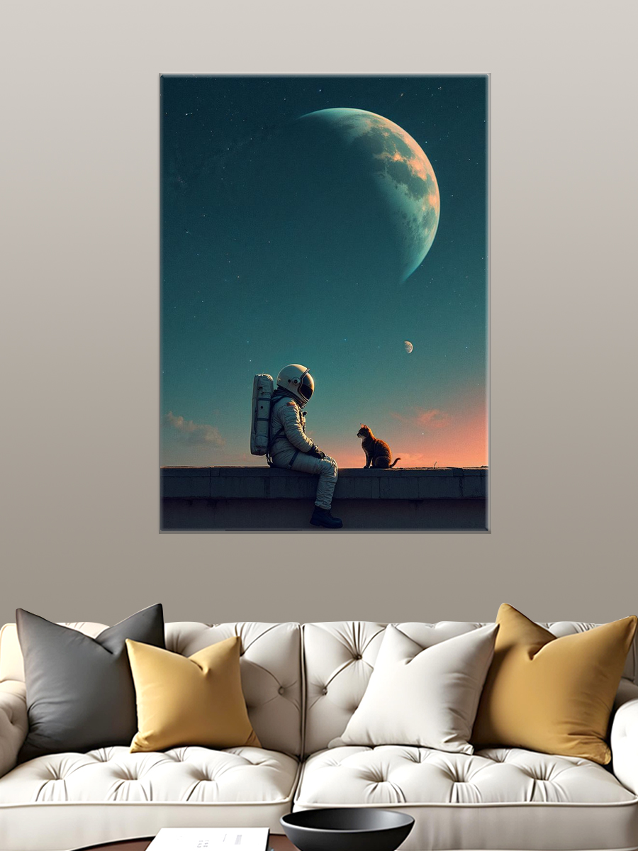 Описание: Картина 50 на 70 "Космическое путешествие" представляет собой удивительное изображение астронавта, сидящего на краю стены и созерцающего бескрайний космос, в то время как рядом с ним уютно расположился кот. Основная идея картины заключается в сочетании человеческого стремления к исследованию и нежной привязанности к домашним животным, что создает уникальный контраст между одиночеством в бесконечности и теплом дружбы. Эта картина вызывает чувство спокойствия и умиротворения, погружая зрителя в атмосферу мечты и размышлений. Она наполняет пространство легкостью и волшебством, вызывая улыбку и теплоту в душе. "Космическое путешествие" идеально подойдет для современных интерьеров — будь то уютная гостиная, стильный кабинет или детская комната. Она станет ярким акцентом и источником вдохновения в любом пространстве, создавая атмосферу фантазии и уюта.