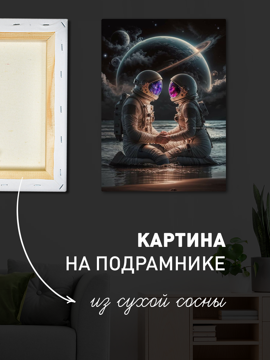 Описание: Картина 50 на 70 "Любовь в космосе". Это потрясающее произведение искусства изображает двух астронавтов, которые, сидя на берегу загадочного океана, держатся за руки. Их шлемы наполнены звездным небом, создавая уникальный контраст с окружающим космическим пейзажем и отражая глубокие чувства, которые связывают их. Основная идея картины заключается в том, чтобы показать, что любовь может преодолеть любые преграды, даже в бескрайних просторах Вселенной. Эта картина вызывает чувства спокойствия и умиротворения, заставляя зрителя задуматься о бесконечности любви и о том, как она может быть мощной даже в самых неожиданных местах. Яркие цвета и детали изображения привлекают внимание и создают атмосферу мечты и романтики. Идеально подойдет для современных интерьеров, особенно в спальне или кабинете, где вы хотите создать уютную и вдохновляющую атмосферу. Она также станет прекрасным акцентом в комнате для отдыха или в гостиной, где сможет порадовать гостей и вызвать разговоры о любви, космосе и бесконечных возможностях. Разместите эту картину на стене, и она станет не только украшением вашего пространства, но и источником вдохновения каждый день.