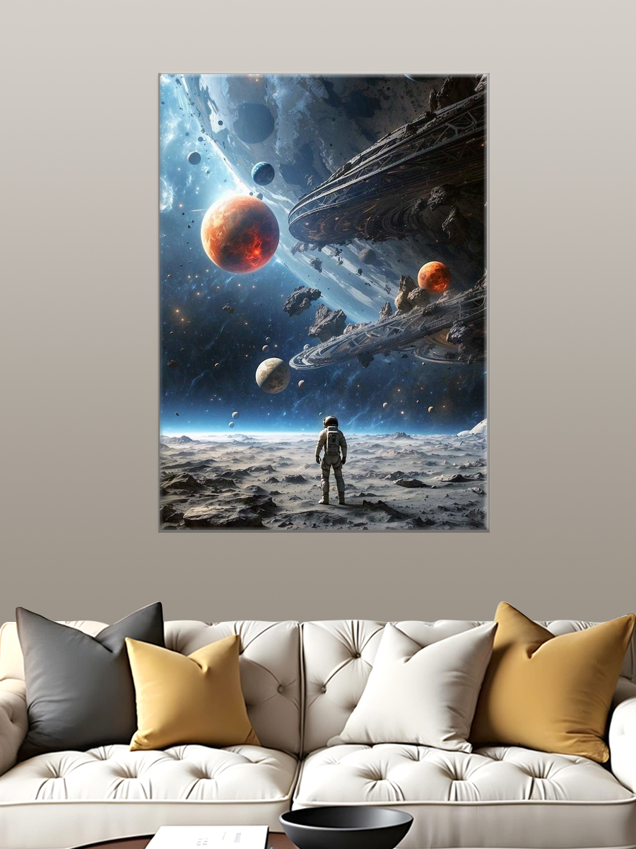 Описание: Картина 50 на 70 "Космическое Путешествие" переносит вас в завораживающий мир космоса, где астронавт стоит на поверхности загадочной планеты, gazing at the luminous moon. Основная идея картины заключается в исследовании неизведанных пространств и ощущении свободы, которые дарит космос. Уникальность этой работы заключается в сочетании реалистичных деталей и фантастической атмосферы, создающей ощущение глубины и бескрайности. Эта картина вызывает чувства восхищения и вдохновения, напоминая о бесконечных возможностях и мечтах о путешествиях в другие миры. Она заставляет задуматься о нашем месте во вселенной и побуждает к мечтам о дальних галактиках. Идеально подходит для современного интерьера, эта картина станет ярким акцентом в гостиной, кабинете или студии. Она прекрасно дополнит пространство, оформленное в стиле хай-тек, минимализм или даже в скандинавском дизайне. Повесьте её над диваном или рабочим столом, и она будет вдохновлять вас каждый день, создавая атмосферу креативности и стремления к новым горизонтам.