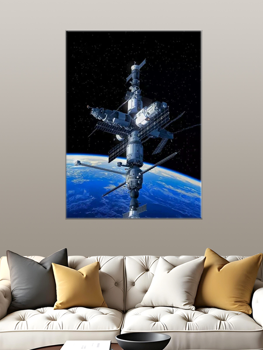 Описание: Картина 50 на 70 "Космическая гармония" изображает величественное космическое пространство с орбитальной станцией и шаттлом, плавающим на фоне безбрежного космоса. Основная идея картины заключается в единстве технологий и природы, в их совместном существовании в бескрайних просторах вселенной. Уникальность этой работы заключается в детальной проработке каждого элемента: от солнечных панелей до контуров планеты внизу, что создает эффект трехмерности и глубины. Эта картина пробуждает чувства удивления и восхищения, наполняя зрителя ощущением бесконечности и тайны космоса. Она заставляет задуматься о наших стремлениях и исследовательском духе, подчеркивая красоту и сложность нашего мира. Идеально подойдет для современных интерьеров, таких как гостиные, кабинеты или даже научные офисы. Она создаст атмосферу вдохновения и креативности, идеально вписываясь в стиль минимализма или хай-тека. Повесьте её в месте, где она будет привлекать внимание и служить источником вдохновения для вас и ваших гостей.