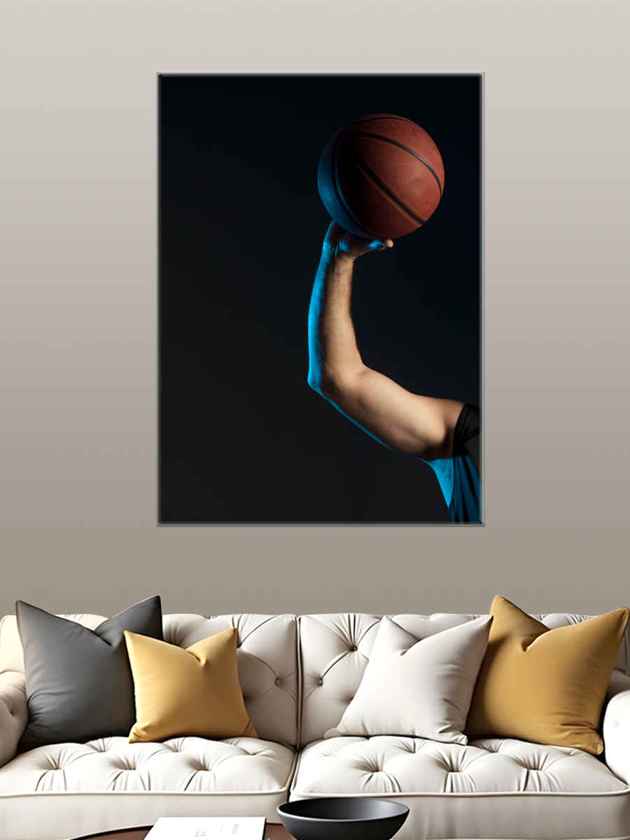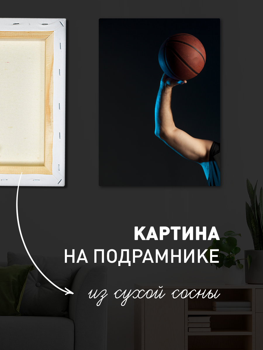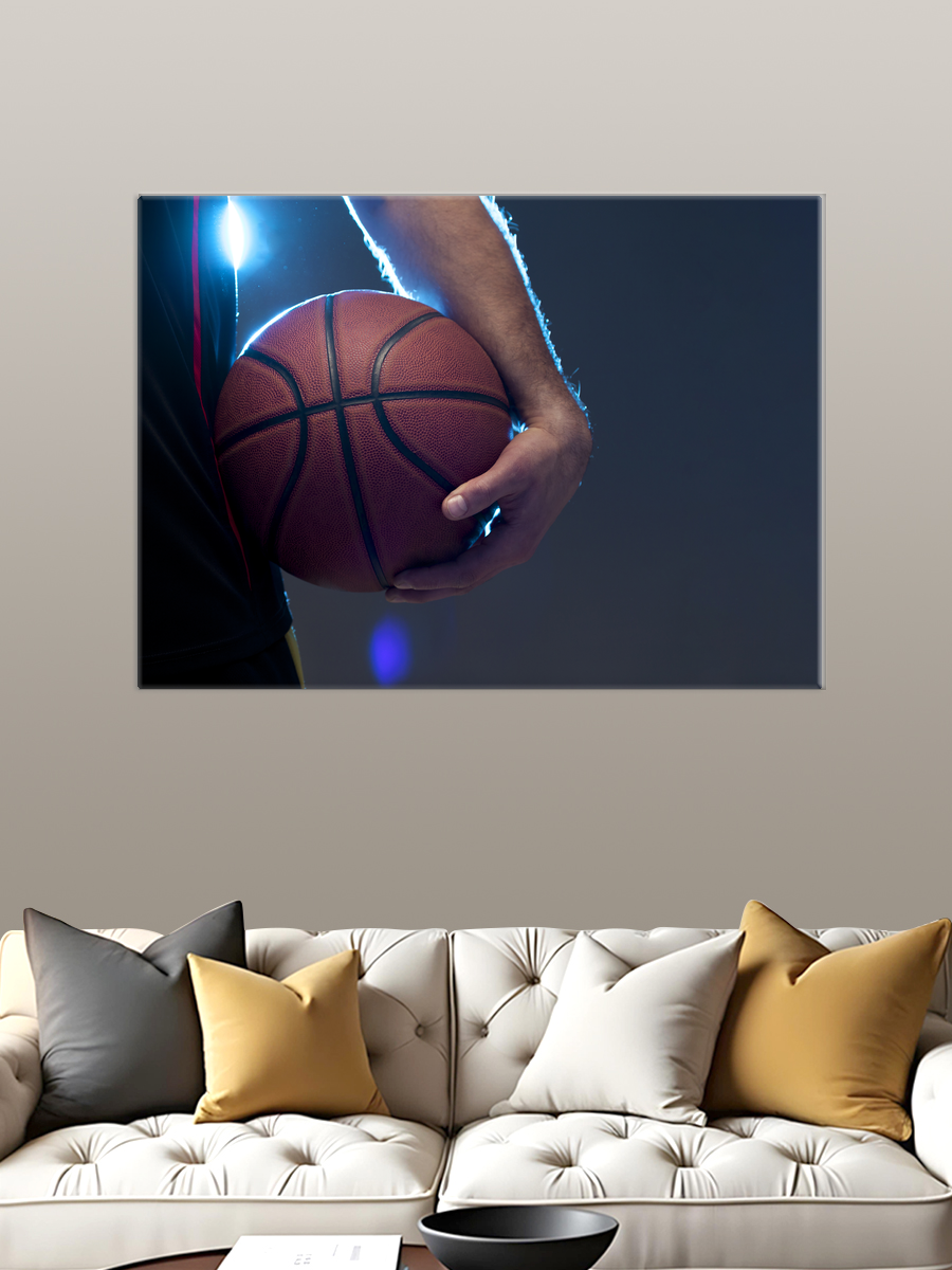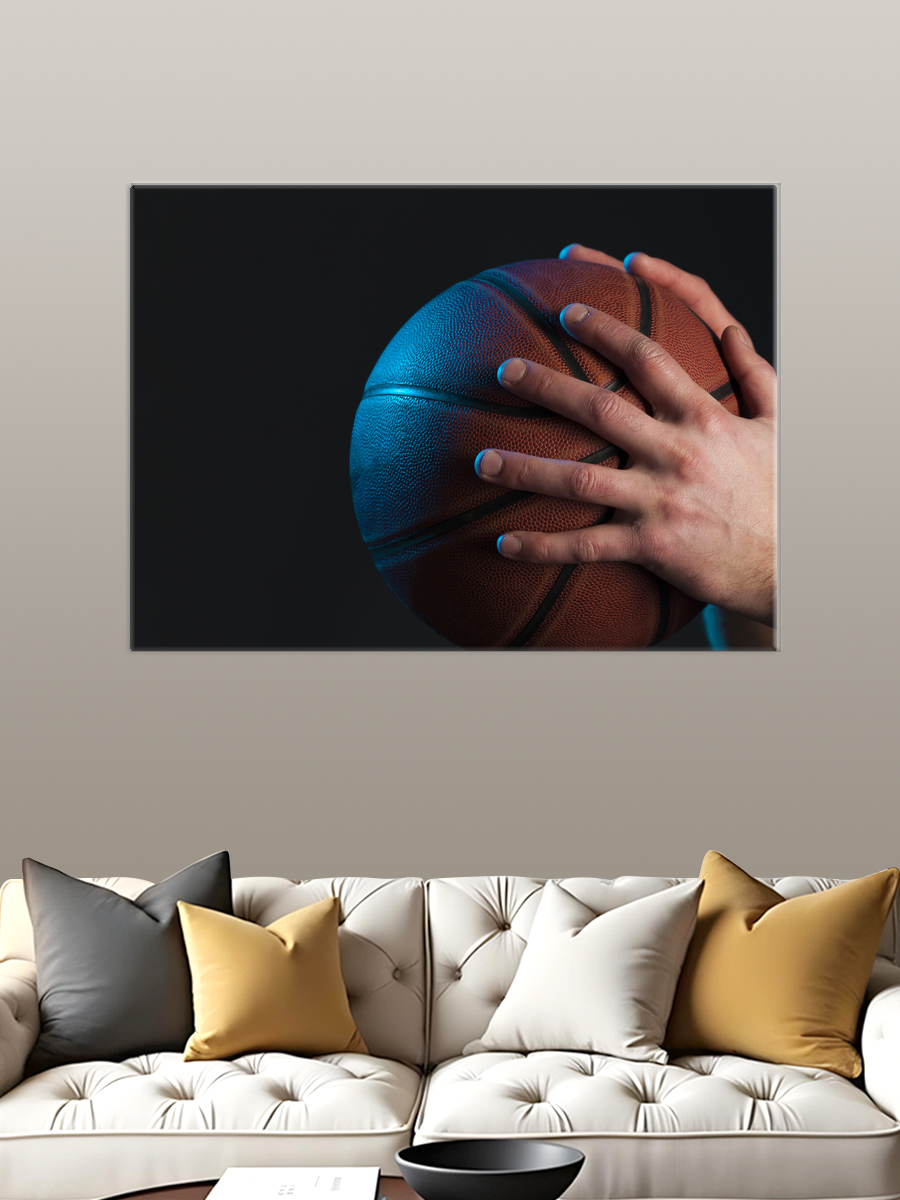 Описание: Картина 50 на 70 'Вдохновение игры'. На этом произведении искусства изображена динамичная рука, держащая баскетбольный мяч, на фоне глубокого черного цвета, который создает контраст с ярким голубым светом. Эта картина олицетворяет движение, энергию и страсть к спорту, передавая атмосферу захватывающего момента перед броском. Каждый штрих на картине передает динамику и решимость, вызывая у зрителя чувство волнения и ожидания. Она вдохновляет, заставляет задуматься о достижении целей и преодолении препятствий. Эта работа станет не только украшением вашего интерьера, но и источником мотивации и силы. Идеально подойдет для спортивных залов, офисов или домашних пространств, где ценится активный образ жизни. Можно повесить в гостиной, чтобы создать атмосферу вдохновения, или в детской комнате, чтобы побудить детей к занятиям спортом. 'Вдохновение игры' станет ярким акцентом в любом интерьере, добавляя ему индивидуальности и стиля.