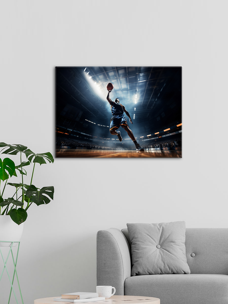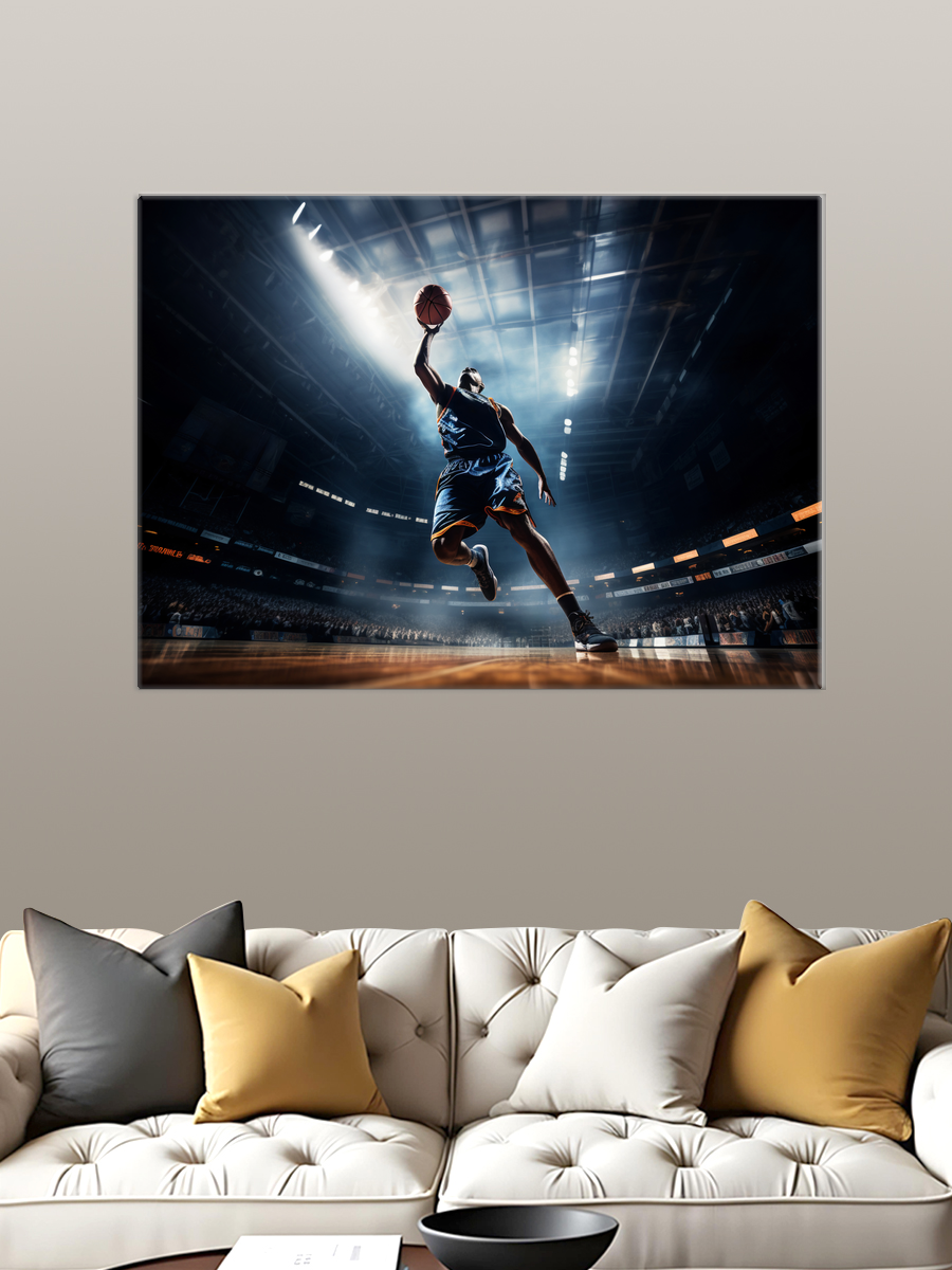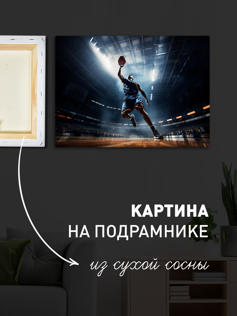 Описание: Картина 50 на 70 "Энергия игры" изображает динамичную сцену с баскетболистом, выполняющим эффектный бросок мяча. В центре внимания – athlete, который, словно паря в воздухе, стремится к победе. Фон пронизан атмосферой напряженности и ожидания, создавая ощущение движения и энергии. Уникальность этой картины заключается в ее способности захватывать момент, когда усилия и стремление к успеху соединяются в одном мгновении. Эта картина вызывает сильные эмоции – чувство вдохновения, стремления к действию и уверенности в собственных силах. Она наполняет пространство энергией и мотивацией, что делает её идеальным дополнением для любой комнаты, где требуется заряд бодрости и жизненной силы. Идеально подойдет для интерьеров в спортивных залах, домашних офисах или гостиных, а также для любых мест, где ценят активный образ жизни и стремление к достижениям. Разместив её на стене, вы не только украсите пространство, но и создадите атмосферу, способствующую достижению целей и вдохновению на новые свершения.