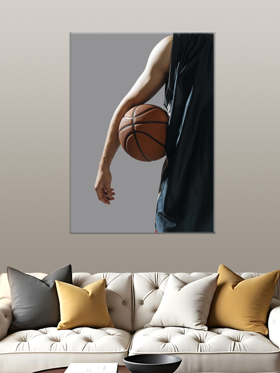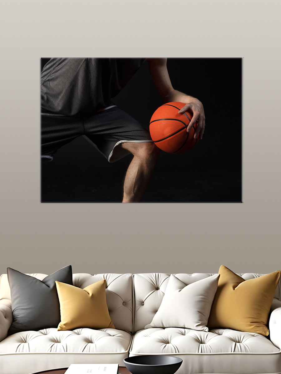 Описание: Картина 50 на 70 'Динамика игры'. На этой картине запечатлен момент захватывающей игры в баскетбол, где игрок, погруженный в процесс, удерживает мяч и готовится к броску. Картина передает энергию и напряжение спортивного духа, создавая уникальную атмосферу, которая вдохновляет и мотивирует. Яркие оранжевые оттенки мяча контрастируют с глубоким черным фоном, что делает изображение особенно выразительным. Эмоции, которые вызывает эта картина, — это азарт, стремление к победе и восторг от игры. Она способна пробуждать в зрителе чувство динамики и движения, создавая ощущение, что он сам является частью этого момента. Это произведение искусства станет отличным акцентом в любом интерьере, привнося в него энергетику и стиль. Картина отлично подойдет для спортивных залов, офисов, а также для современных интерьеров в стиле лофт или минимализм. Она станет великолепным дополнением к домашнему кабинету, комнате подростка или даже гостиной, добавляя ей характер и индивидуальность. 'Динамика игры' — это не просто картина, это вдохновение для каждого, кто стремится к новым вершинам.