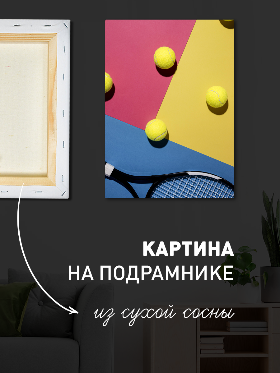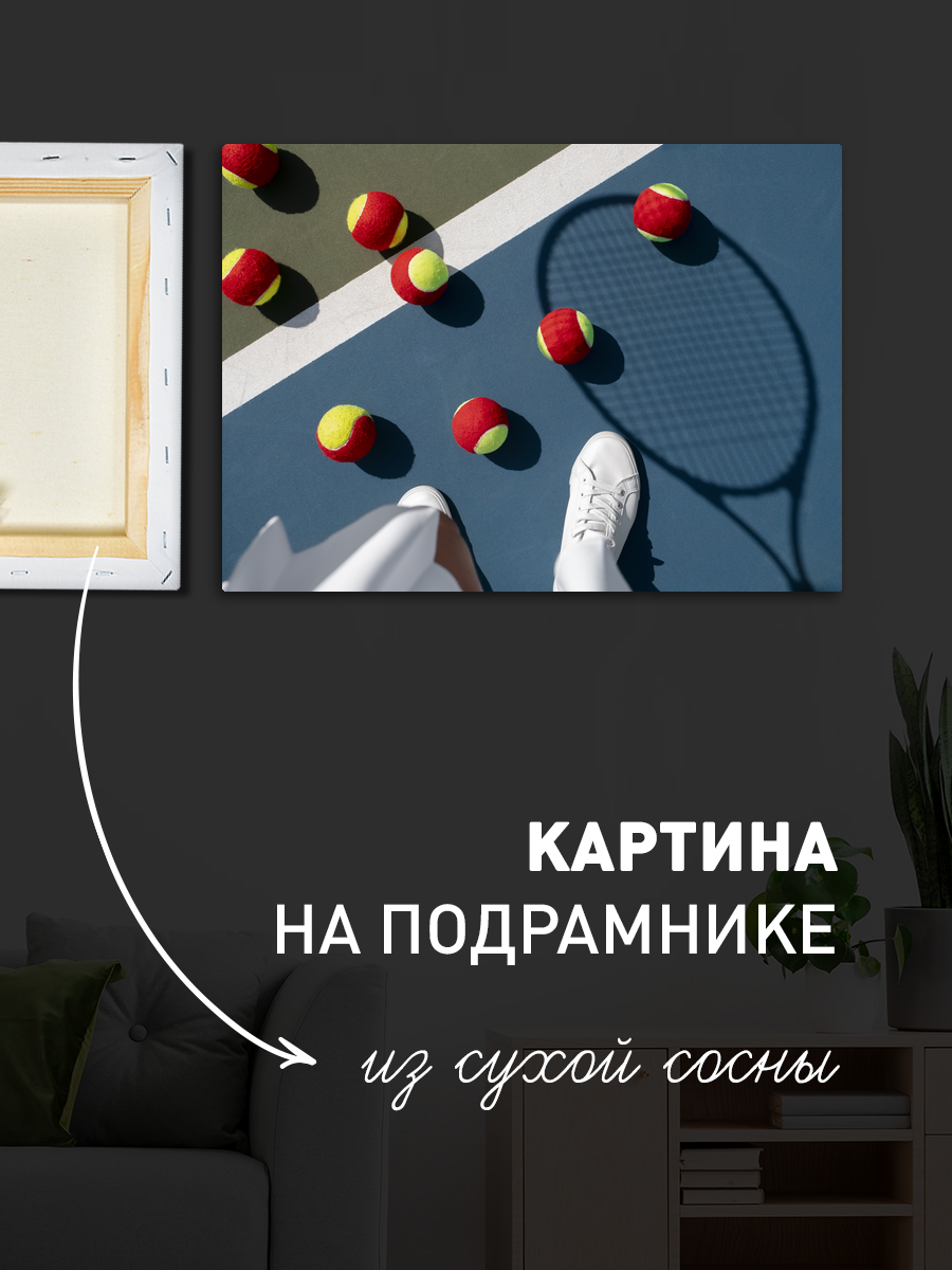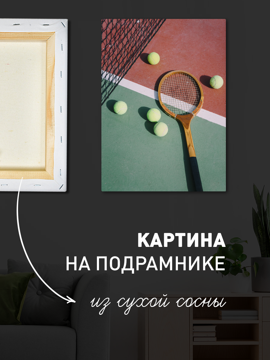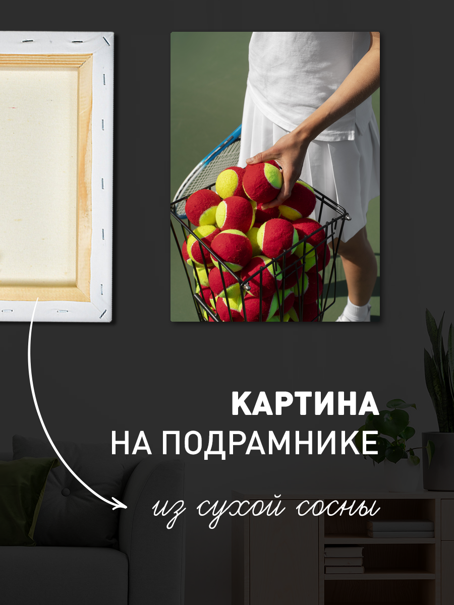 Описание: Картина 50 на 70 'Теннисная игра' представляет собой захватывающий и динамичный момент на теннисном корте. На изображении видна корзина, переполненная яркими теннисными мячами, и ракетка, лежащая рядом, что создает атмосферу готовности к игре. Основная идея картины заключается в передаче энергии и страсти к спорту, а также в том, как простые моменты могут приносить радость и вдохновение. Эта картина вызывает чувство легкости и свободы, напоминая о летних днях, проведенных на свежем воздухе, и о том волнении, которое приносит игра. Яркие цвета мячей и контрастный фон создают настроение оптимизма и активности, что делает данный арт-объект идеальным дополнением к любому пространству. Картина отлично подойдет для спортивных залов, комнат для игр, а также для уютных гостиных или кабинетов, где она станет центральным элементом, привлекающим внимание. Она будет гармонично смотреться в интерьере, оформленном в современном или минималистском стиле, добавляя ему яркости и динамики. Не упустите возможность украсить свое пространство этой уникальной картиной, которая не только украсит интерьер, но и будет вдохновлять на новые достижения.