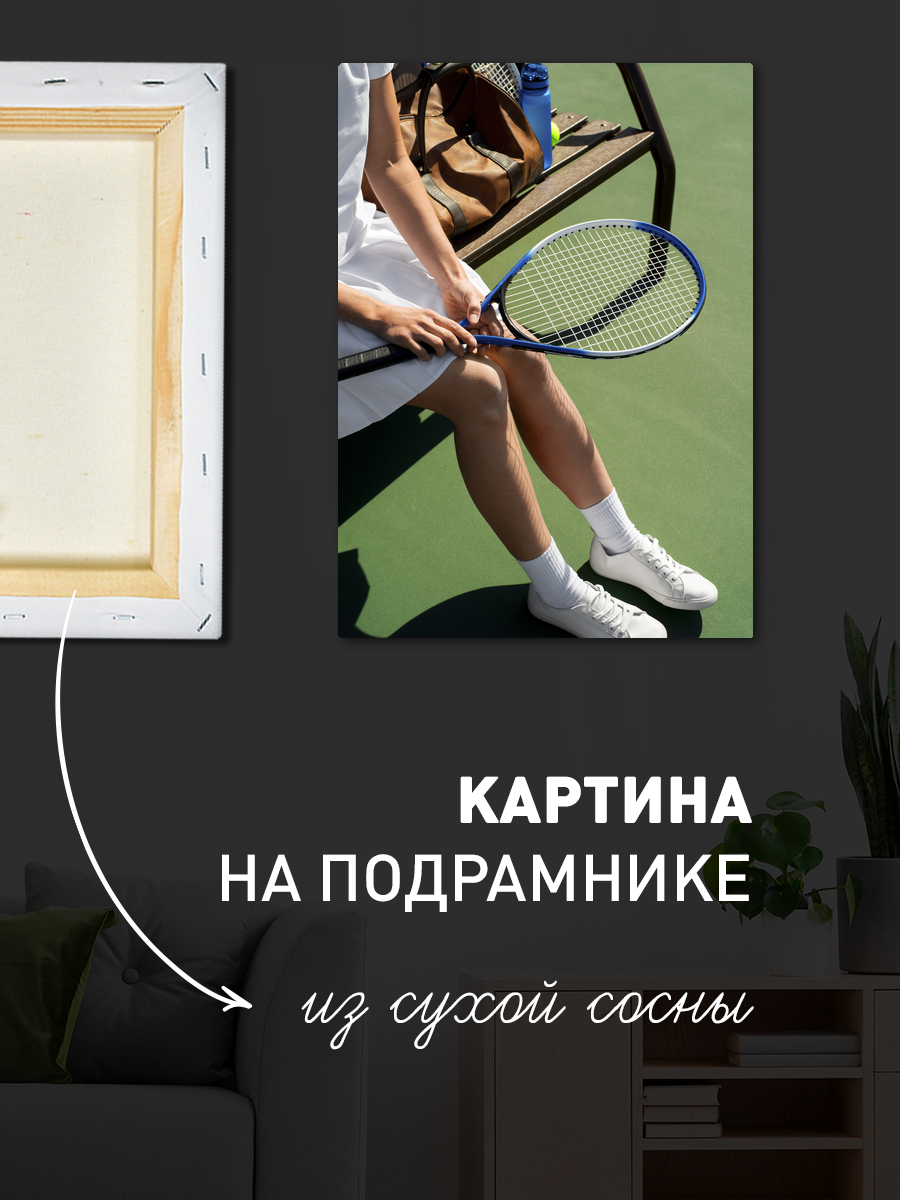 Описание: Картина 50 на 70 "Теннисное вдохновение" изображает момент отдыха теннисиста на корте. На полотне запечатлена рука, держащая теннисную ракетку, и изящно обнаженная нога, что придаёт картине динамичность и легкость. Основная идея картины заключается в сочетании активности и спокойствия, что делает её уникальной. Она передает чувство ожидания, готовности к новым вызовам и радости от любимого занятия. Эмоции, которые вызывает эта картина, — это стремление к движению и вдохновение. Она наполняет пространство энергией и позитивом, создавая атмосферу, в которой хочется заниматься спортом и стремиться к новым достижениям. Это произведение искусства станет отличным акцентом в любом интерьере, особенно в спортивных и активных пространствах. Картина прекрасно впишется в домашний спортзал, офис или даже в зону отдыха. Она может стать отличным подарком для любителей тенниса и спорта в целом, а также тех, кто ценит активный образ жизни. "Теннисное вдохновение" украсит стены вашего дома, напоминая о том, что движение — это жизнь.