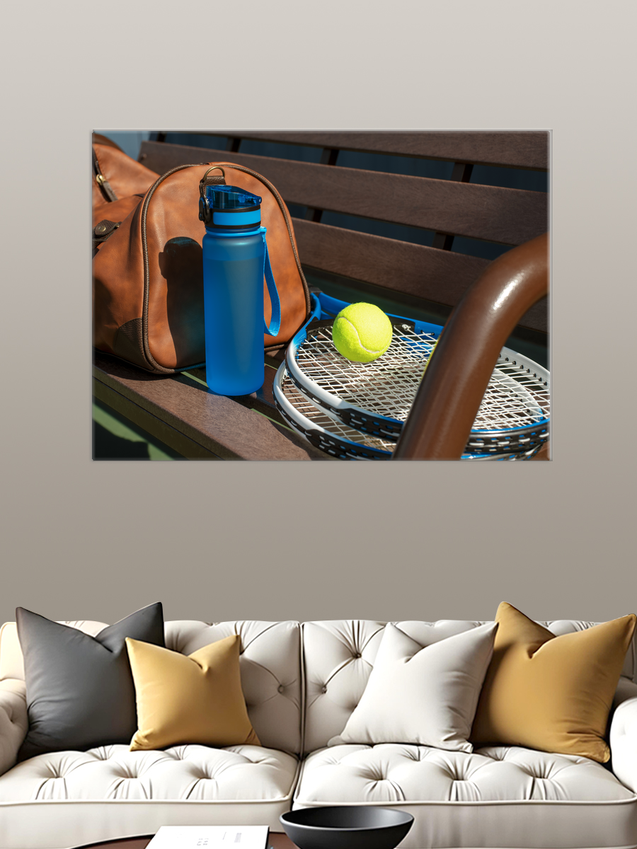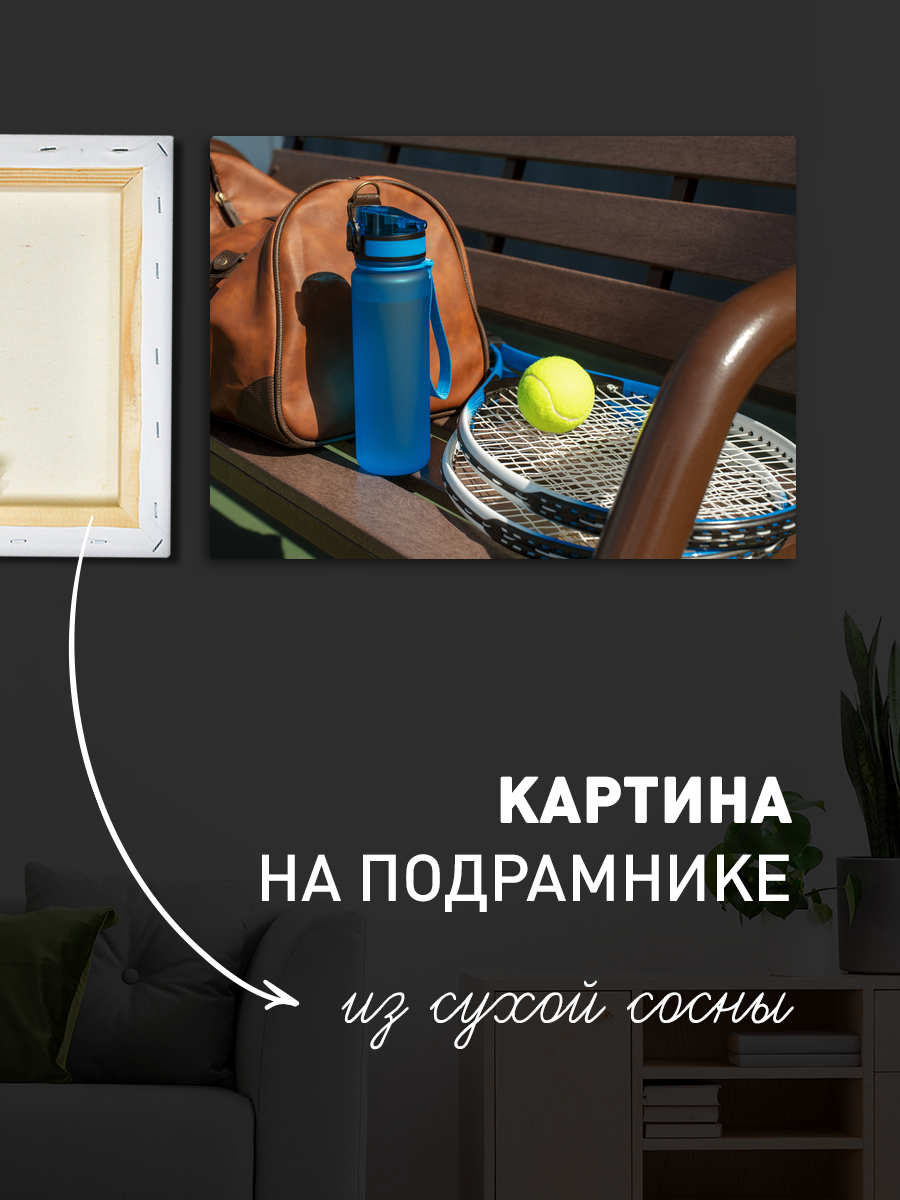 Описание: Картина 50 на 70 "Летний день на корте". Эта яркая и жизнерадостная работа изображает момент отдыха на теннисном корте. На картине вы видите стильную спортивную сумку, синюю бутылку с водой, яркий теннисный мяч и ракетку, расположенные на солнечной скамейке. Основная идея картины — передать атмосферу активного отдыха и радости от занятия спортом. Уникальность этой работы заключается в её способности сочетать элементы спорта и повседневной жизни, создавая гармонию между активностью и уютом. Картина вызывает позитивные эмоции, напоминая о летних днях, наполненных энергией и спортивными достижениями. Она идеально подойдет для спортивных залов, домашних офисов или гостиных, добавляя яркие акценты и вдохновение в любое пространство. Благодаря своему размеру, картина станет центральным элементом интерьера, привлекая внимание и вдохновляя на новые достижения. Повесьте её на стену, и она будет напоминать вам о важности активного образа жизни и физической активности в повседневной жизни.