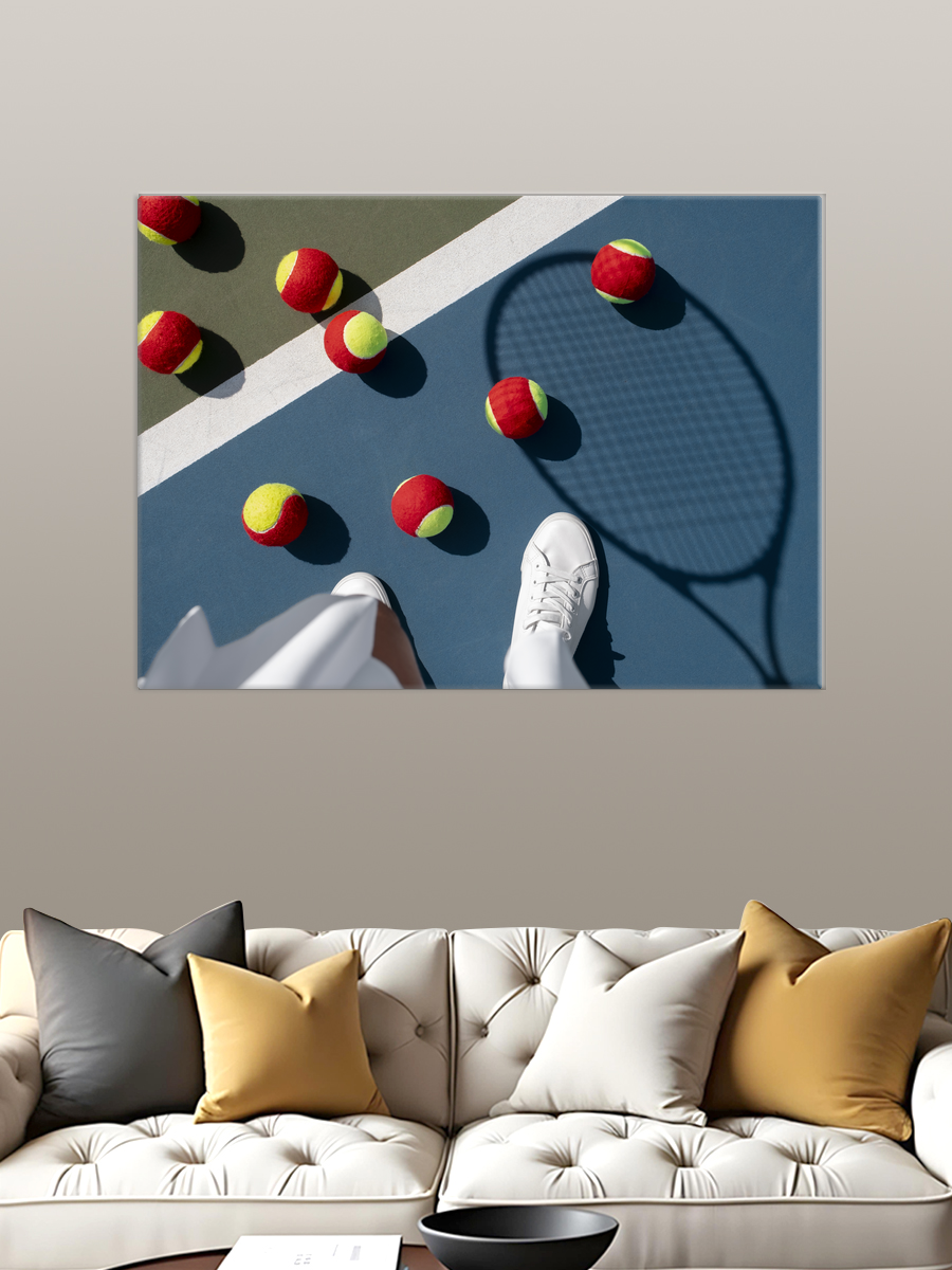 Описание: Картина 50 на 70 "Теннисный момент" — это яркое и динамичное изображение, запечатлевающее атмосферу теннисного корта. На картине мы видим теннисные мячики, разбросанные по цветному покрытию корта, создающие ощущение активной игры. Уникальность этой картины заключается в её способности передать движение и энергию спорта, а также в необычном ракурсе, с которого сделан снимок. Эта картина вызывает позитивные эмоции и чувство свободы, вдохновляя на активный образ жизни. Яркие цвета мячей и контрастные оттенки фона создают жизнерадостное настроение, которое будет отлично сочетаться с любым интерьером. Она идеально впишется в спортзал, игровую комнату или даже офис, добавляя элемент динамики и стиля. "Теннисный момент" — это не просто украшение стены, а источник вдохновения для всех, кто ценит движение и азарт. Поставьте её в любое пространство, и она станет центром притяжения, напоминая о важности активного образа жизни и радости от игры.