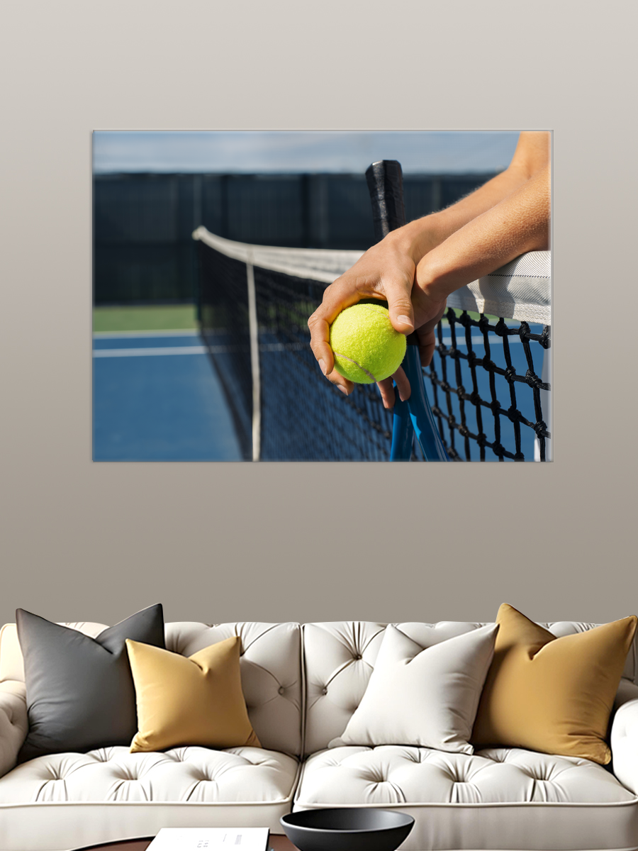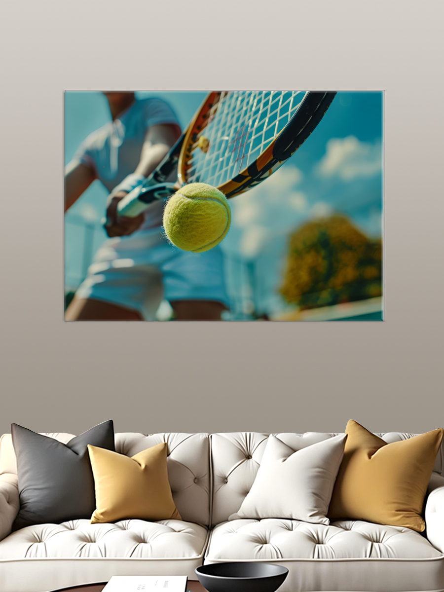 Описание: Картина 50 на 70 "Теннисный момент" изображает динамичный момент игры в теннис, запечатленный с уникального ракурса. На холсте четко виден яркий желтый теннисный мяч, застрявший в черной сетке, что символизирует напряжение и азарт спортивного состязания. Основная идея картины заключается в том, чтобы подчеркнуть красоту и динамизм тенниса, передавая зрителю ощущение движения и энергии. Эта работа вызывает живые эмоции: зритель может почувствовать азарт и ожидание, погружаясь в атмосферу спортивного соревнования. Каждый взгляд на картину напоминает о стремлении к победе и настойчивости, что делает ее подходящей для тех, кто ценит спорт и активный образ жизни. Картина отлично впишется в современный интерьер, став акцентом в гостиной, кабинете или спортзале. Она будет вдохновлять на достижения и поднимать настроение, а также станет замечательным подарком для любителей тенниса и активного отдыха. Рассмотрите возможность повесить ее на стену в рамках, соответствующих стилю вашего помещения, чтобы создать гармоничное пространство, наполненное энергией и позитивом.