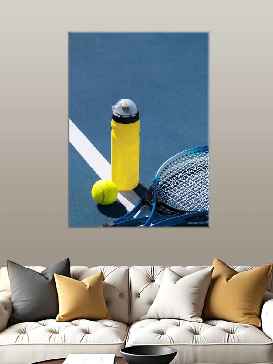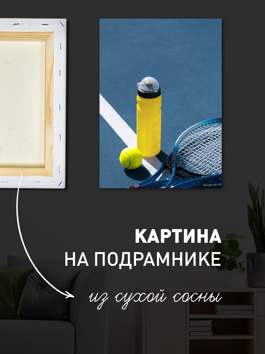 Описание: Картина 50 на 70 "Теннисная игра" изображает динамичную сцену на теннисном корте, где яркий желтый спортивный бутылек и мяч в центре композиции создают ощущение активности и энергии. Уникальность этой картины заключается в контрасте между яркими элементами и спокойным голубым фоном корта, что привлекает внимание и передает атмосферу спортивного азарта. Эта картина вызывает положительные эмоции, пробуждая в зрителе желание заниматься спортом и проводить время на свежем воздухе. Сочетание ярких цветов создает жизнерадостное настроение, которое будет радовать вас каждый день. Идеально подходит для интерьеров, оформленных в спортивном или современном стиле. Она станет отличным акцентом в доме, подходя для размещения в спортзале, игровой комнате или даже в гостиной, добавляя яркие цвета и позитивную энергетику в любое пространство. Также картина станет замечательным подарком для любителей тенниса и активного образа жизни.