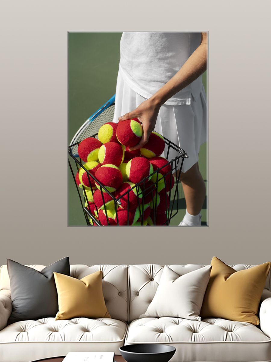 Описание: Картина 50 на 70 "Теннисная Симфония" изображает динамичный момент на теннисном корте, где рука игрока аккуратно держит корзину с яркими мячами. Основная идея картины заключается в передаче энергии и страсти, присущей этому виду спорта. Яркие цвета мячей – красный и желтый – контрастируют с спокойным фоном корта, создавая ощущение движения и азартного ожидания. Эта картина вызывает чувство вдохновения и мотивации, напоминая о том, как важно стремиться к победе и радоваться каждому моменту. Она станет отличным дополнением к любому интерьеру, особенно в спортивных залах, кабинетах или даже в уютных гостиных, где ценят активный образ жизни. Повесьте её на видном месте, и она обязательно привлечет внимание и вызовет положительные эмоции у ваших гостей.