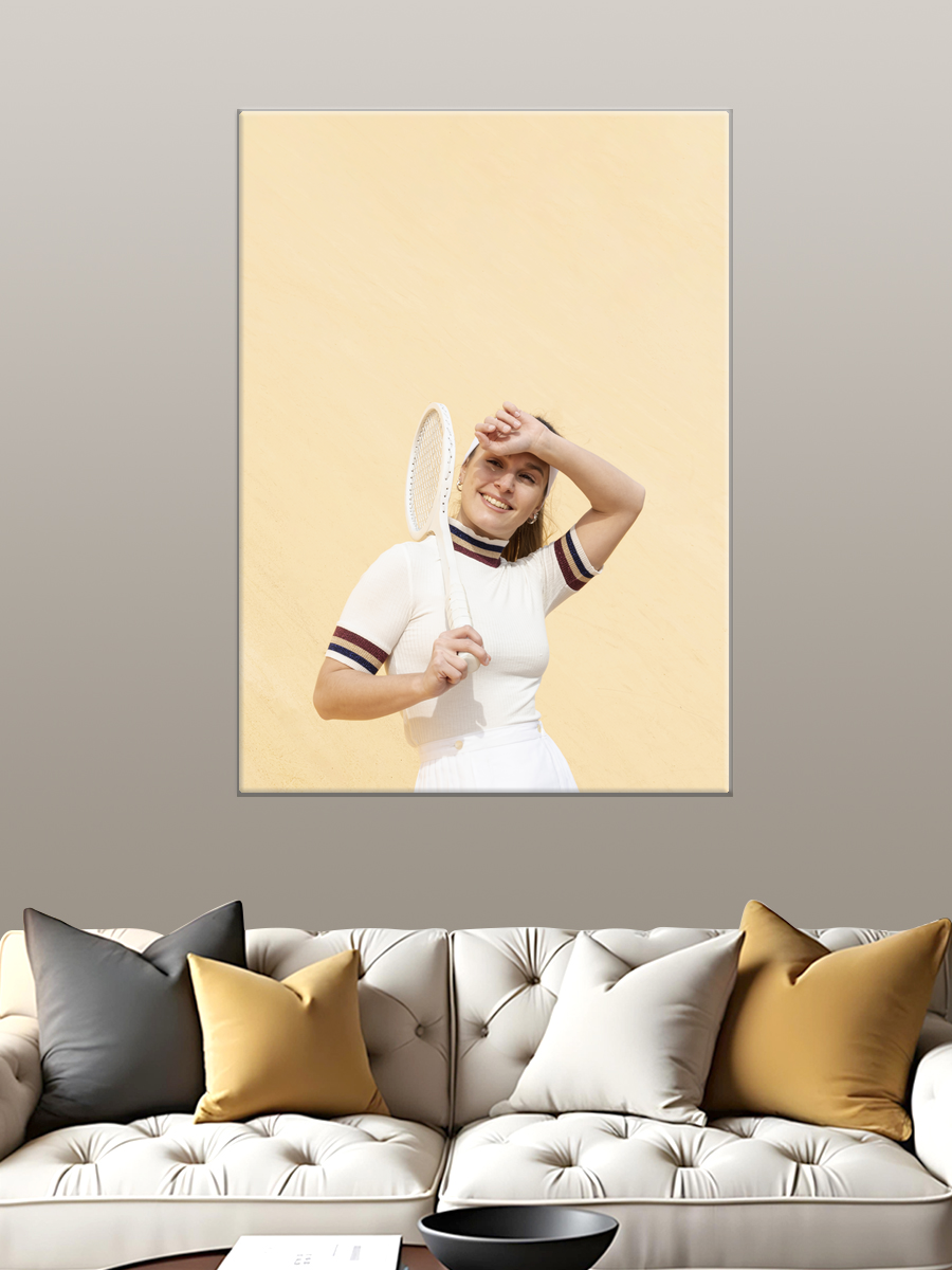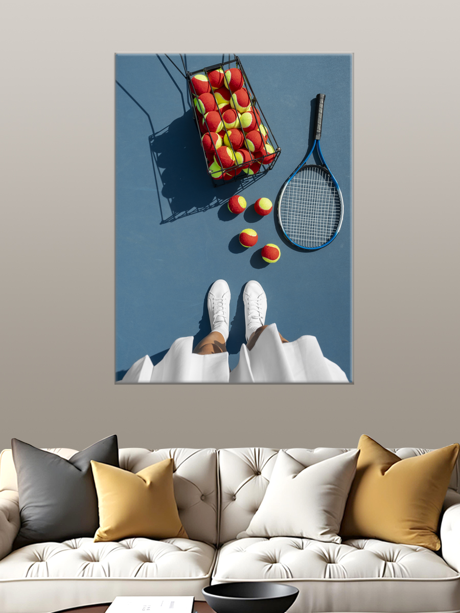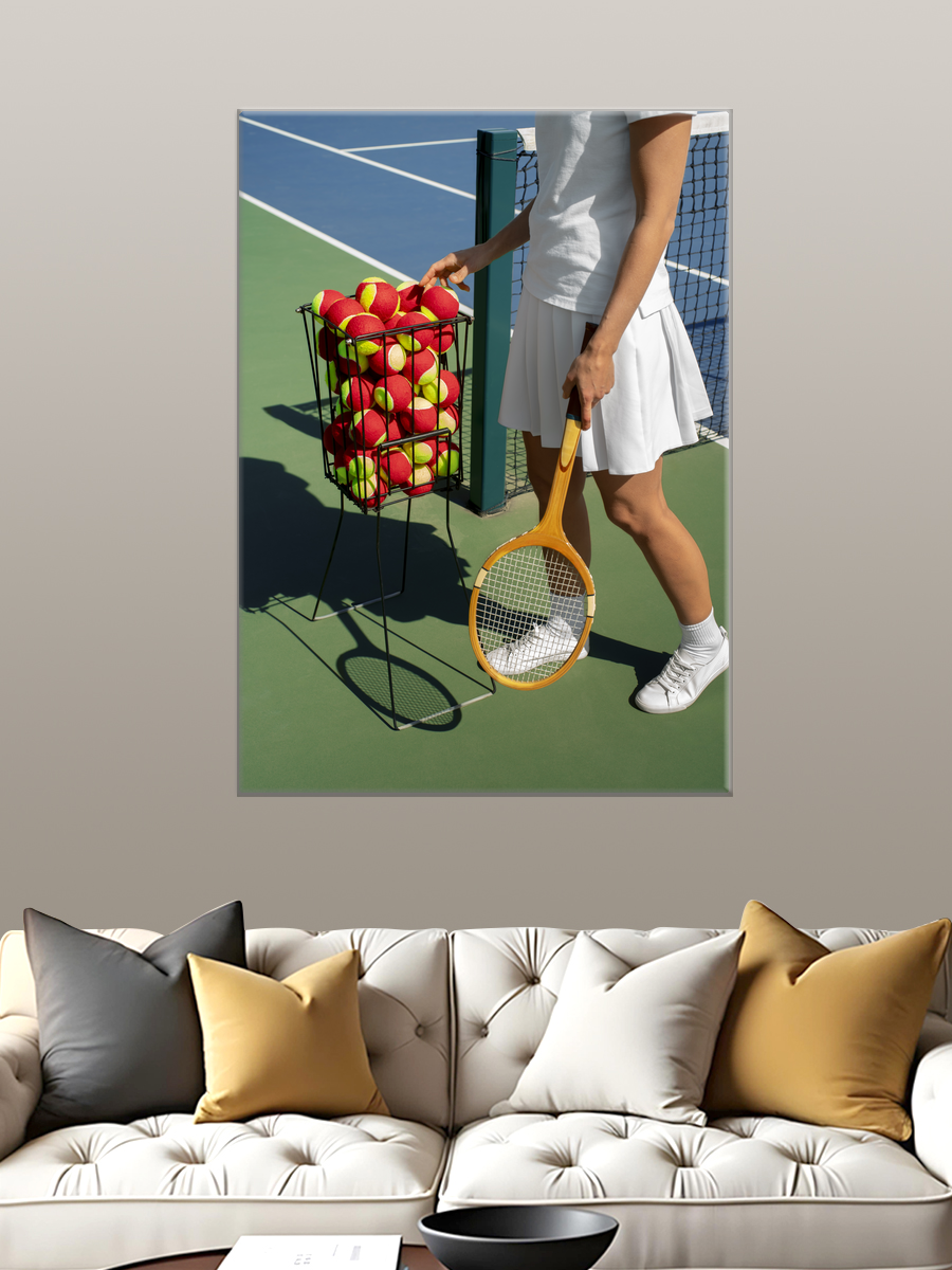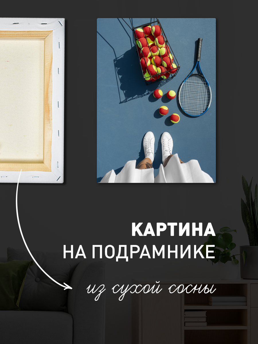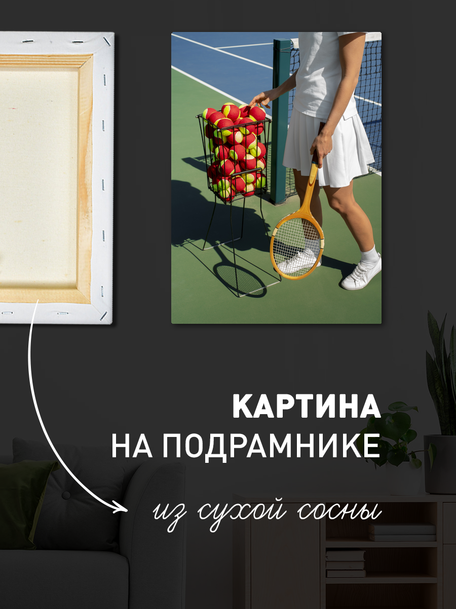 Описание: Картина 50 на 70 'Теннисное вдохновение' изображает динамичную сцену на теннисном корте. На переднем плане — женщина в белой спортивной форме, держащая ракетку и корзину с теннисными мячами, готовая к игре. Яркие цвета, такие как голубой фон корта и зеленая трава, создают энергичную атмосферу, передающую дух спорта и активности. Уникальность этой картины заключается в том, что она не только отражает любовь к теннису, но и вдохновляет зрителя на занятия спортом, вызывая чувство свободы и движения. Эта работа наполнена позитивом и энергией, что делает её идеальным дополнением к любому интерьеру. Она прекрасно впишется в спортивный зал, домашний офис или даже в детскую комнату, наполняя пространство мотивацией и радостью. Каждый взгляд на эту картину будет напоминать о важности физической активности и увлечения, а также вдохновлять на новые достижения. 'Теннисное вдохновение' станет не просто элементом декора, но и источником положительных эмоций в вашем доме.