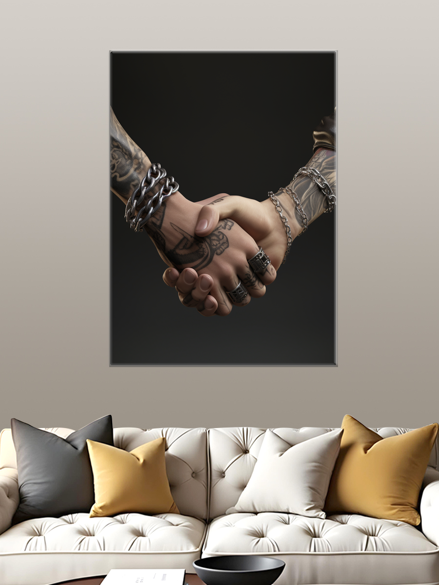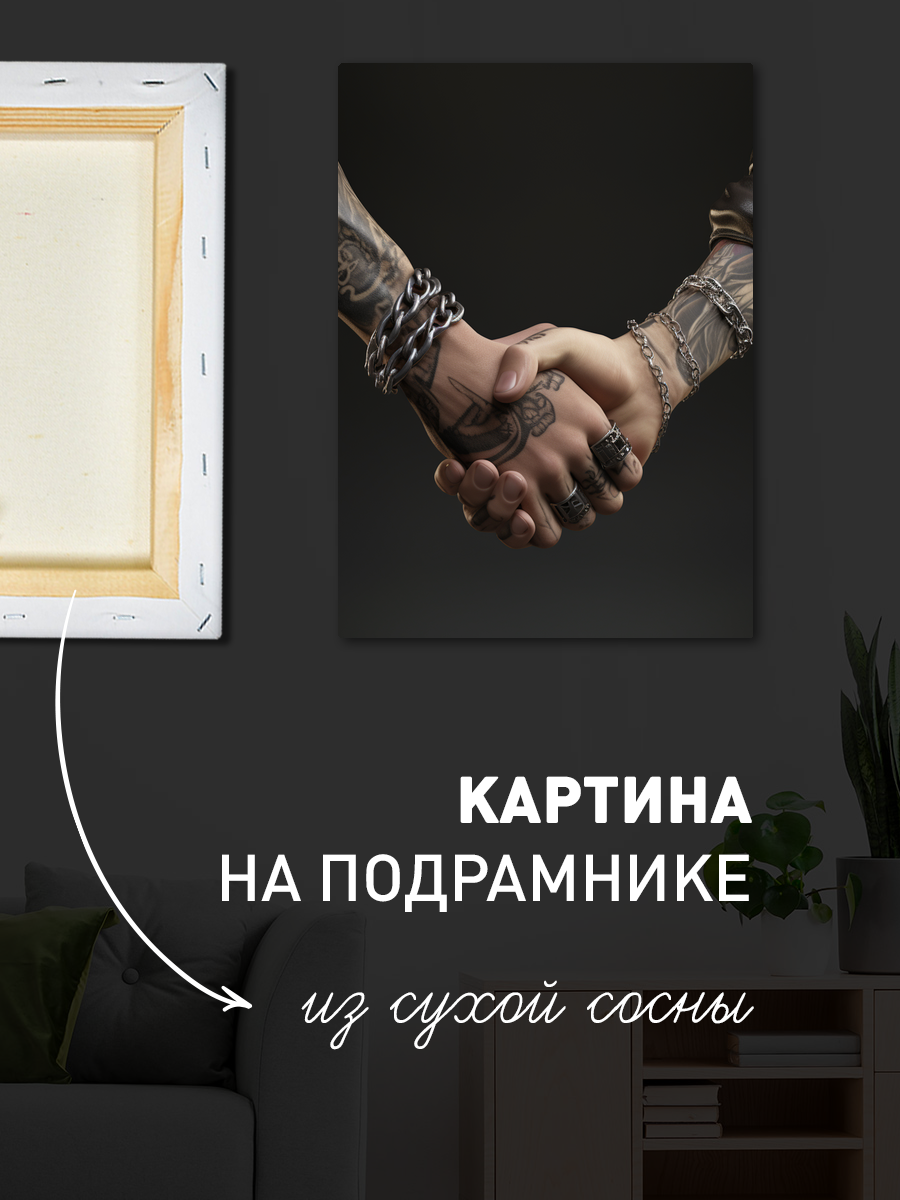 Описание: Картина 50 на 70 "Сила единства" изображает две руки, крепко держащиеся за руки, покрытые яркими татуировками и украшенные цепями и кольцами. Основная идея картины — это символ единства и силы, которая возникает, когда люди объединяются, независимо от их различий. Эта работа уникальна благодаря детализированным элементам и контрастным цветам, которые подчеркивают эмоциональную связь между двумя фигурами. Эта картина вызывает мощные эмоции, такие как доверие, дружба и поддержка. Она наполняет пространство энергией и вдохновением, побуждая зрителей задуматься о своих отношениях с окружающими. "Сила единства" станет отличным акцентом в любом интерьере, от современного loft до уютного кафе или даже домашнего офиса. Вы можете повесить эту картину в гостиной, чтобы привнести в атмосферу чувство единства и поддержки, или в спальне, где она будет напоминать о важности близких связей. Это идеальный подарок для друзей или близких, которые ценят искусство и стремятся к глубоким эмоциональным связям.