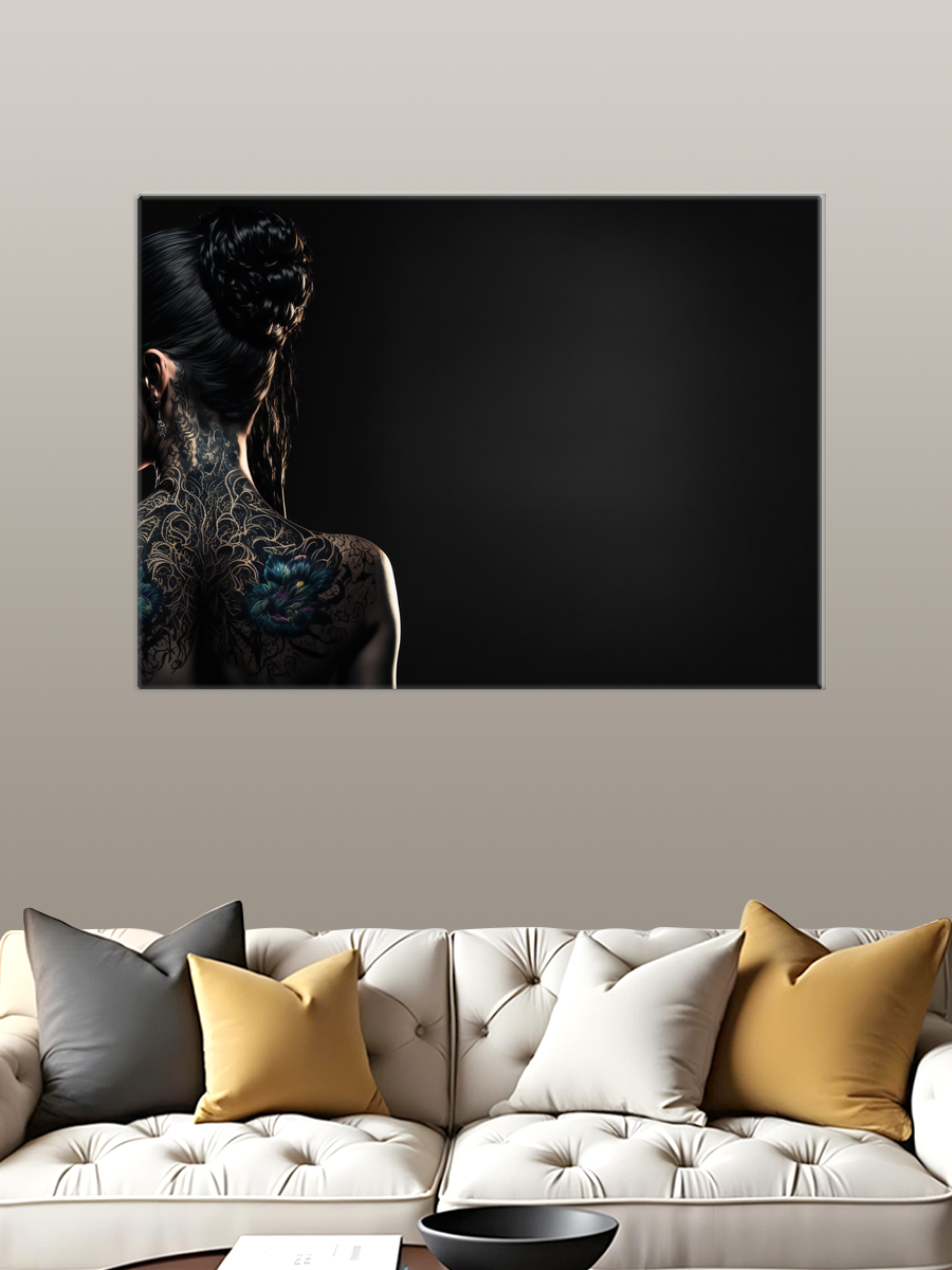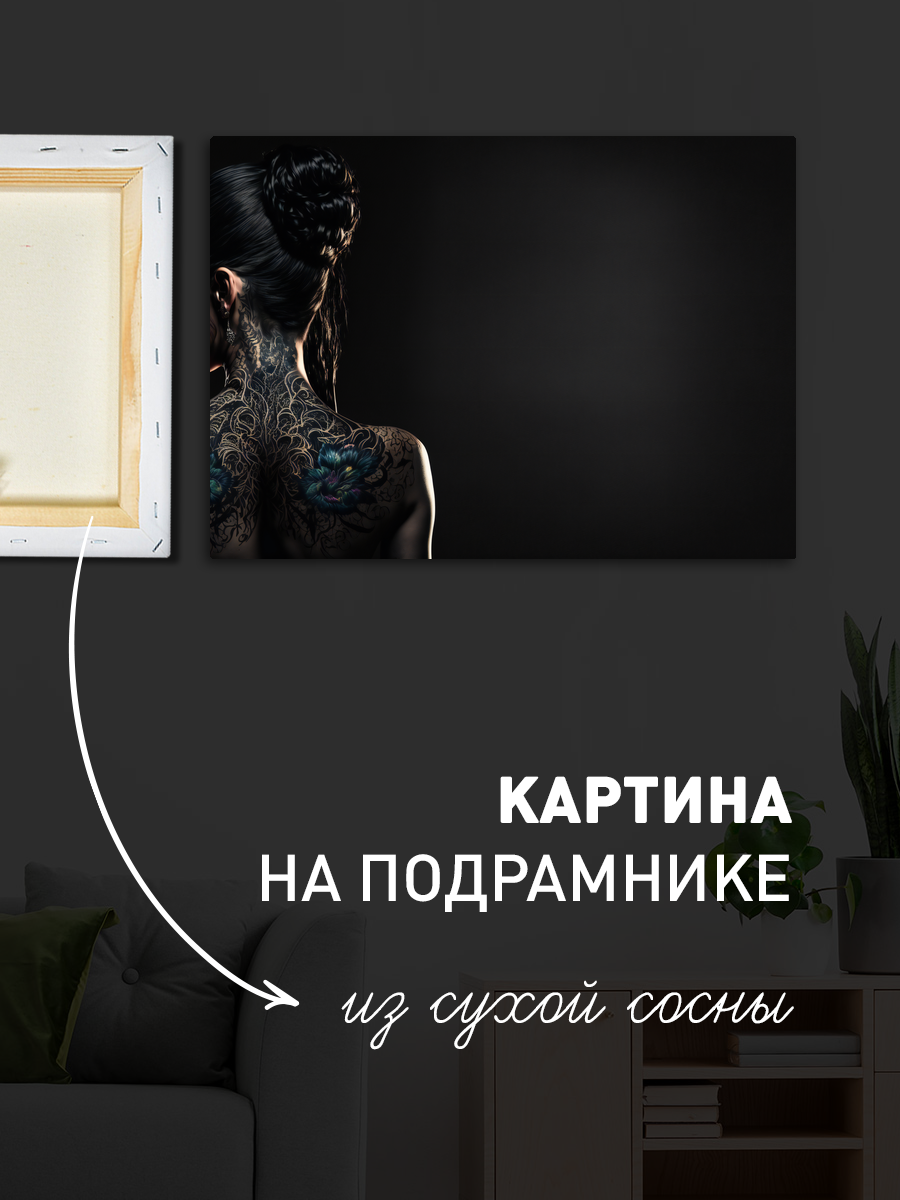 Описание: Картина 50 на 70 'Тайна татуировки' представляет собой впечатляющий визуальный образ, где акцент сделан на изящные, детализированные татуировки, покрывающие спину модели. Основная идея картины заключается в исследовании тематики самовыражения и индивидуальности через искусство татуировки, которое является не только украшением, но и способом рассказать свою уникальную историю. Уникальность картины заключается в контрасте между темным фоном и яркими оттенками татуировок, что создает эффект глубины и загадочности. Эта картина вызывает целый спектр эмоций: от восхищения красотой искусства до размышлений о внутреннем мире человека. Смотрящий может почувствовать связь с изображенной моделью, ощутить ее силу и уверенность. Картина способна вдохновить на самовыражение и поиск своего места в мире. 'Тайна татуировки' станет замечательным дополнением к современному интерьеру, идеально вписываясь в стиль лофт, минимализм или даже арт-декор. Она прекрасно будет смотреться в гостиной, кабинете или студии, создавая атмосферу креативности и самовыражения. Повесьте её на стену, чтобы она стала центром внимания и предметом обсуждения среди гостей, подчеркивая ваш уникальный вкус и стиль.