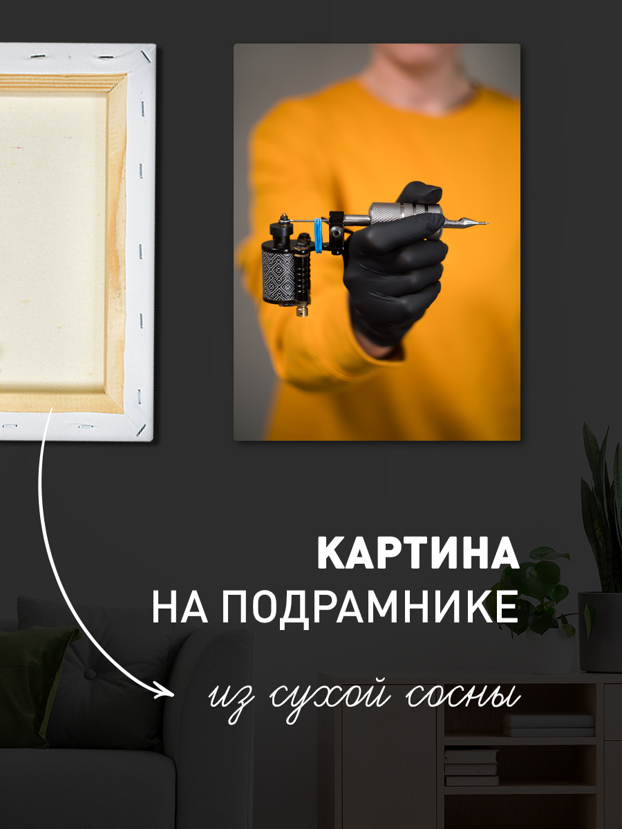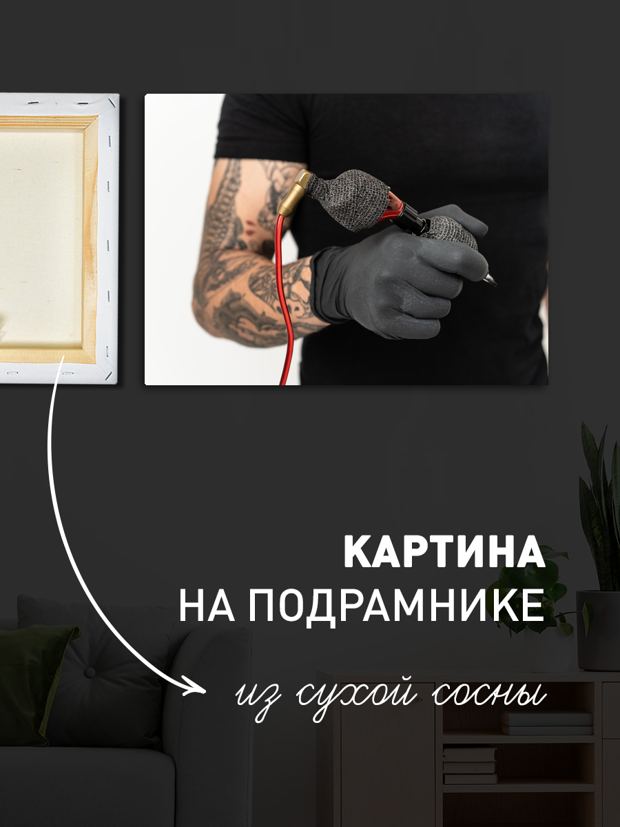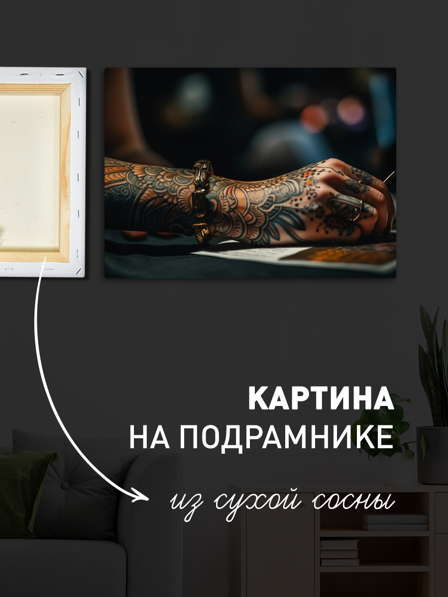 Описание: Картина 50 на 70 "Татуировка на руке" представляет собой захватывающее изображение, на котором изображена рука с татуировками, держащая татуировочный аппарат. Основная идея картины заключается в передаче искусства татуировки как формы самовыражения и креативности. Художник мастерски запечатлел детали татуировок, демонстрируя искусство и индивидуальность, что делает эту работу уникальной. Эта картина вызывает глубокие эмоции, такие как восхищение и уважение к искусству татуировки, а также любопытство к историям, скрывающимся за каждым рисунком. Она может стать отличным акцентом в вашем интерьере, добавляя смелости и характера в любое пространство. Картина прекрасно подойдет для студий, где делают татуировки, а также для современных интерьеров, оформленных в стиле лофт, минимализм или эклектика. Она может быть повешена в гостиной, кабинете или даже в спальне, став не только элементом декора, но и источником вдохновения для вас и ваших гостей.