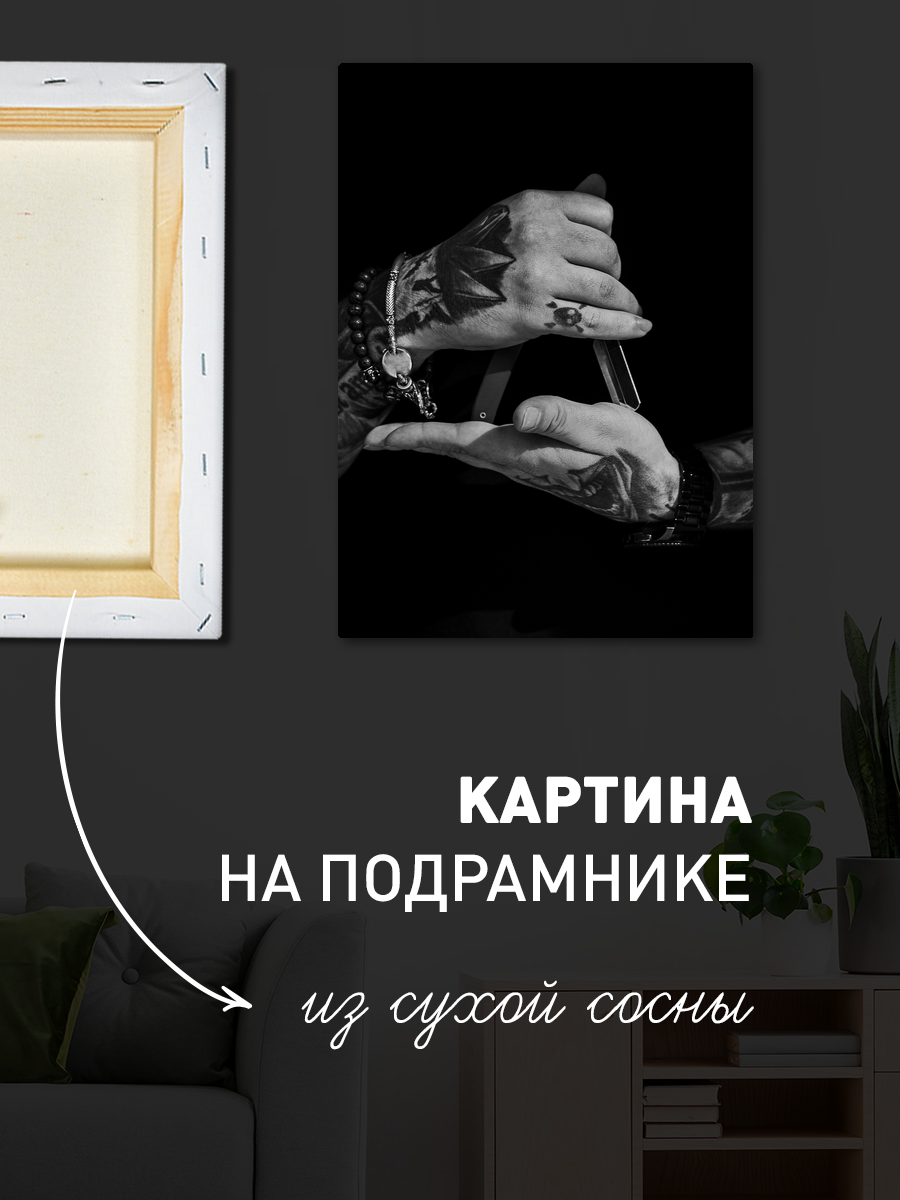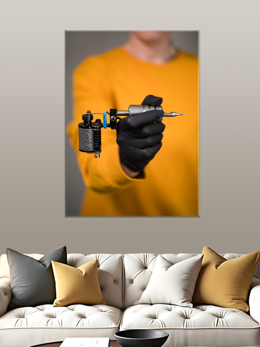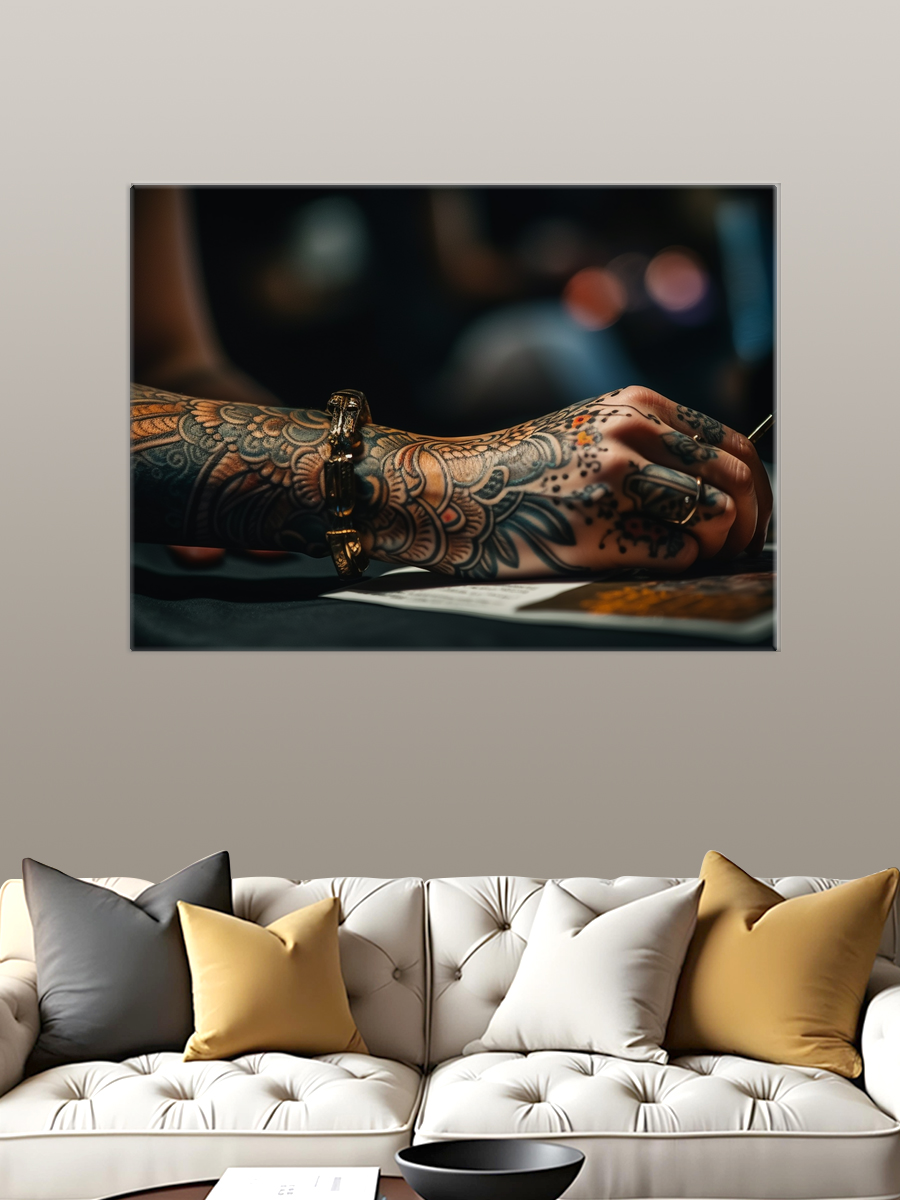Описание: Картина 50 на 70 "Татуировка на руке" представляет собой захватывающее изображение, на котором изображена рука с татуировками, держащая татуировочный аппарат. Основная идея картины заключается в передаче искусства татуировки как формы самовыражения и креативности. Художник мастерски запечатлел детали татуировок, демонстрируя искусство и индивидуальность, что делает эту работу уникальной. Эта картина вызывает глубокие эмоции, такие как восхищение и уважение к искусству татуировки, а также любопытство к историям, скрывающимся за каждым рисунком. Она может стать отличным акцентом в вашем интерьере, добавляя смелости и характера в любое пространство. Картина прекрасно подойдет для студий, где делают татуировки, а также для современных интерьеров, оформленных в стиле лофт, минимализм или эклектика. Она может быть повешена в гостиной, кабинете или даже в спальне, став не только элементом декора, но и источником вдохновения для вас и ваших гостей.