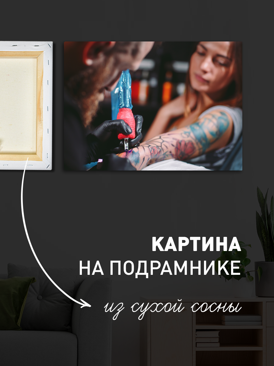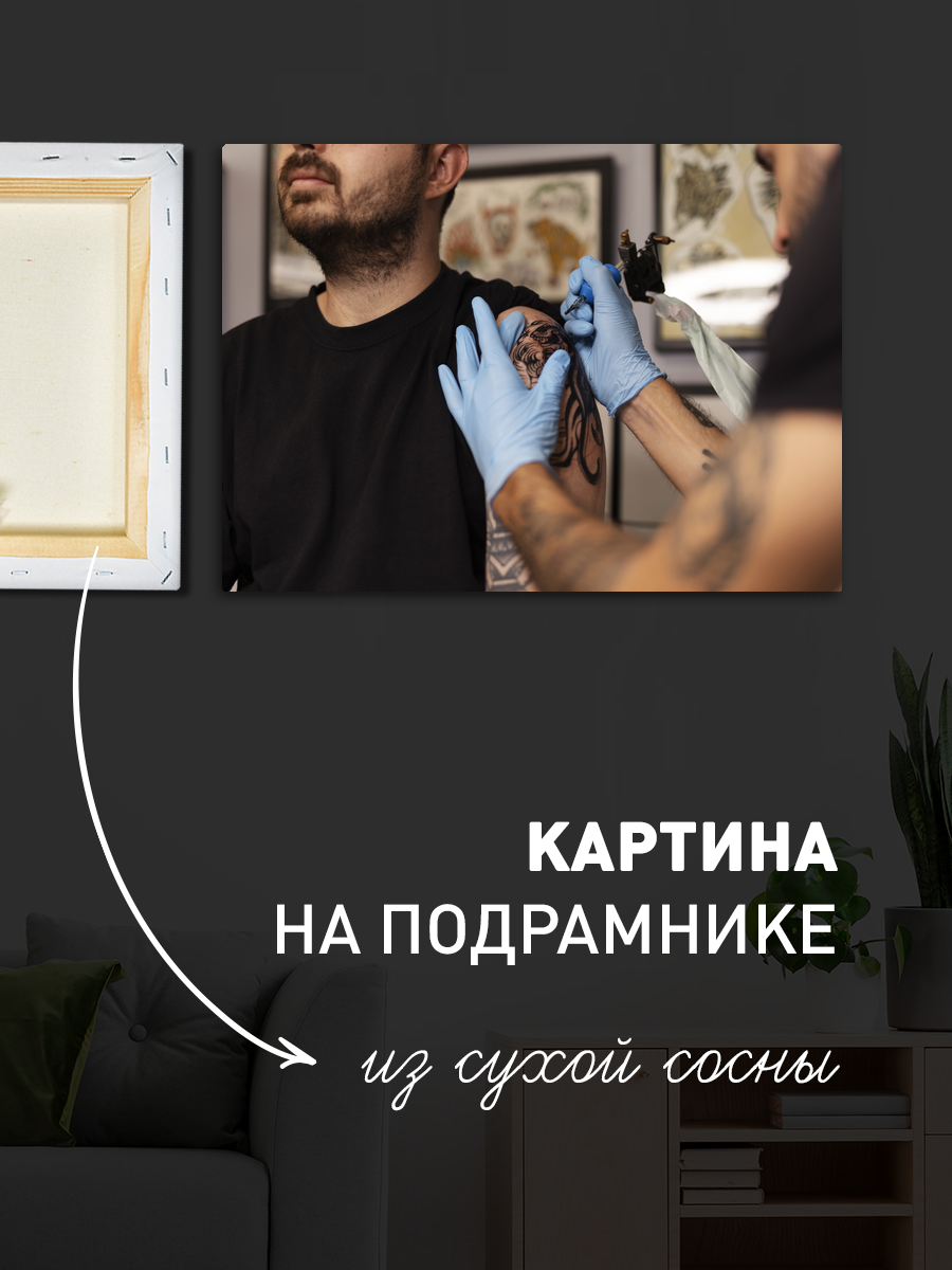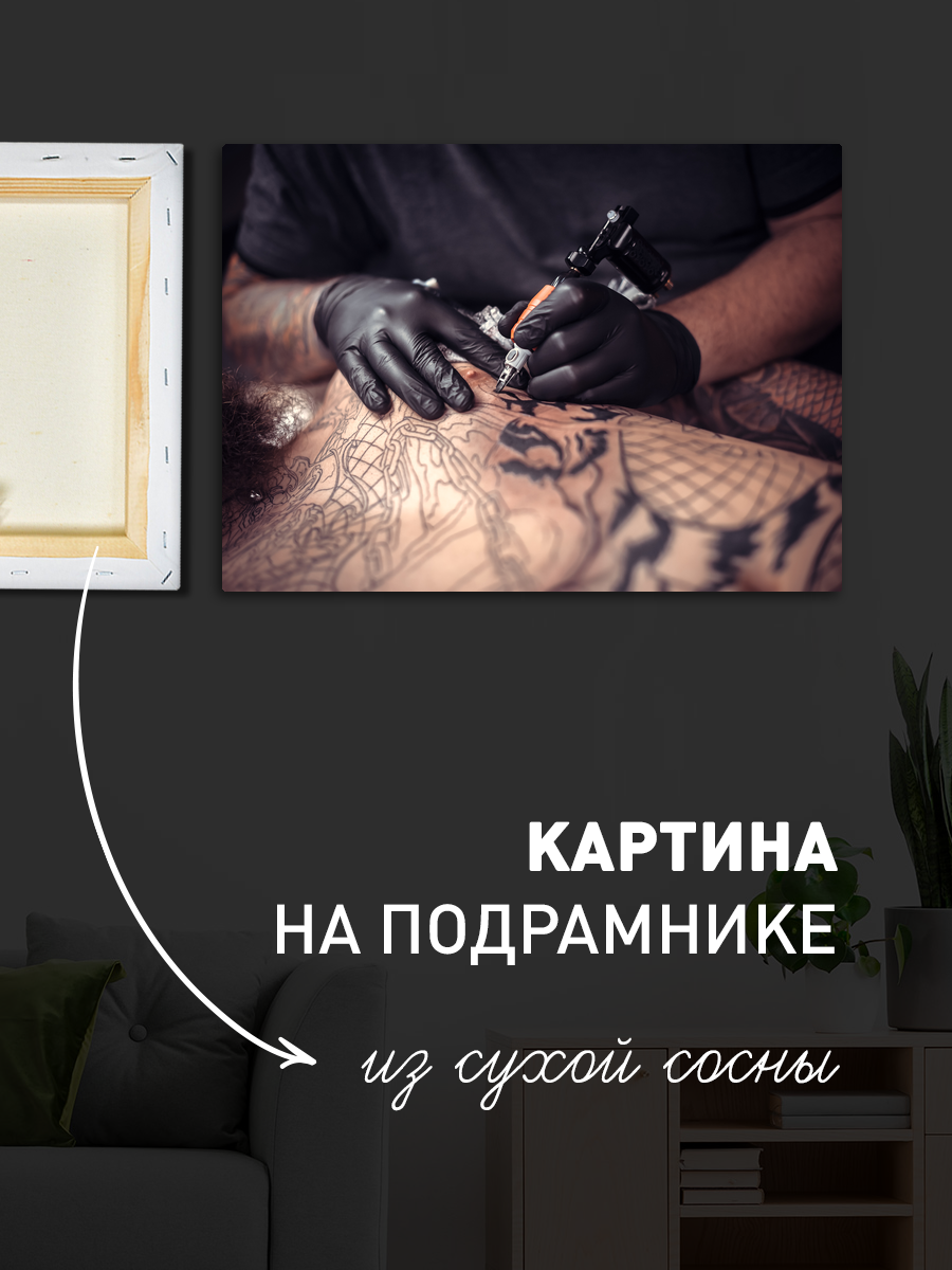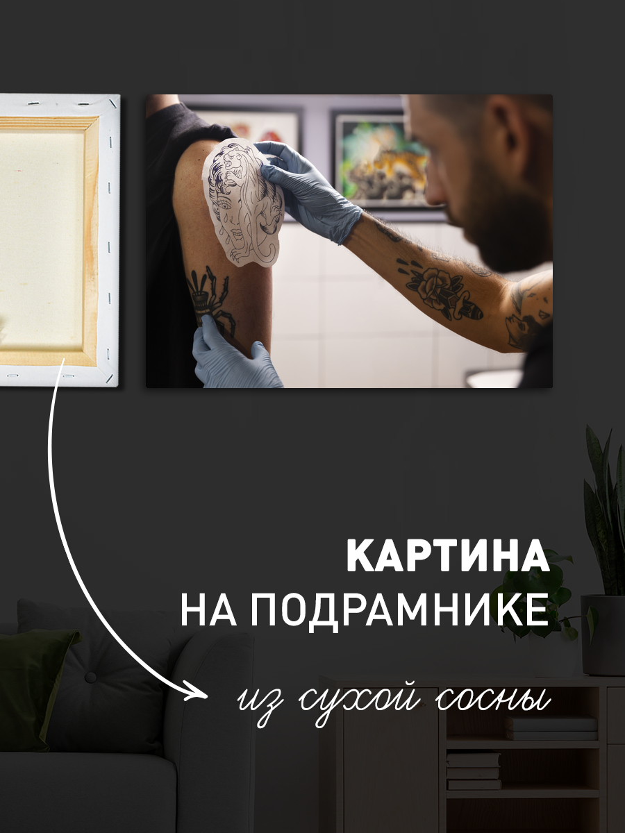 Описание: Картина 50 на 70 "Татуировка в процессе" изображает момент, когда талантливый татуировщик создает уникальный узор на руке клиента. Основная идея картины заключается в передаче искусства татуировки как формы самовыражения и личной истории. Каждый штрих и линия символизируют индивидуальность и глубину человеческой души. Эта картина вызывает чувства восхищения и вдохновения, погружая зрителя в мир творчества и самовыражения. Она может стать центром внимания в любом интерьере, добавляя ему характер и стиль. Простота и элегантность изображения делают её идеальным дополнением как для современных, так и для классических пространств. Картина прекрасно впишется в художественные студии, салоны красоты, а также в домашние кабинеты или гостевые комнаты. Ее можно разместить на стене, где она будет вдохновлять и радовать глаз, создавая атмосферу креативности и свободы. Не упустите возможность добавить этот уникальный арт-объект в своё пространство, чтобы каждый раз, проходя мимо, ощущать прилив энергии и вдохновения.