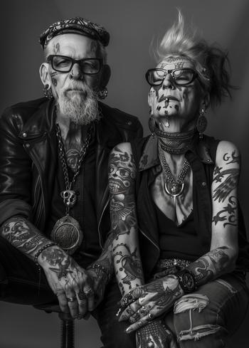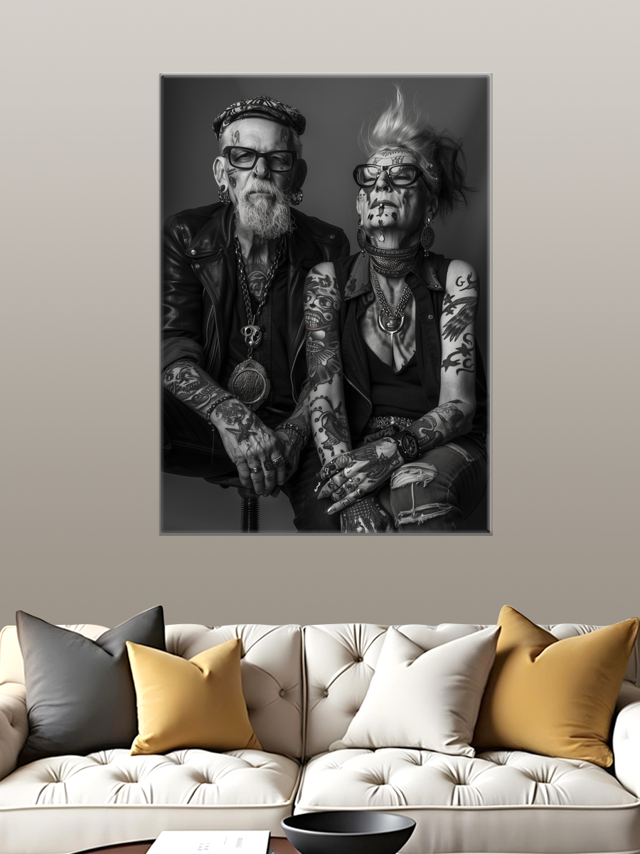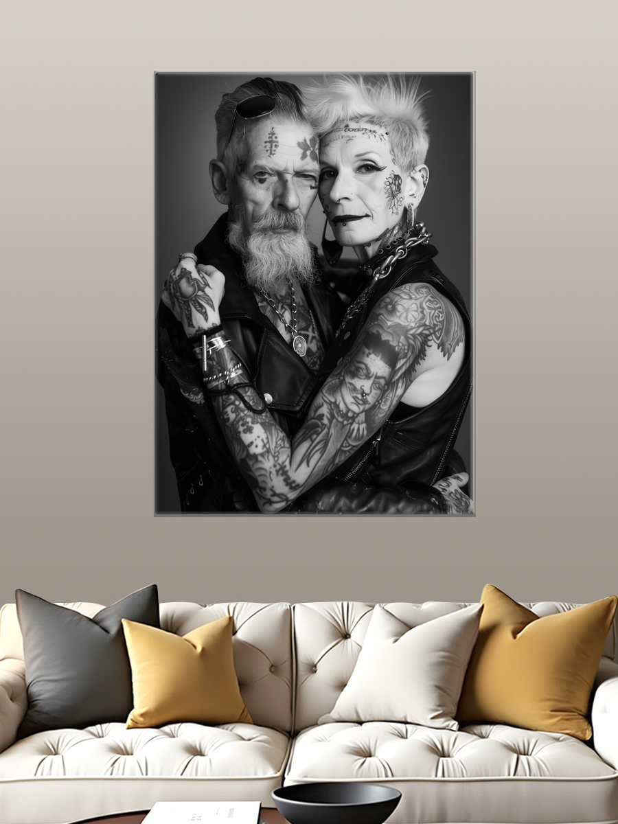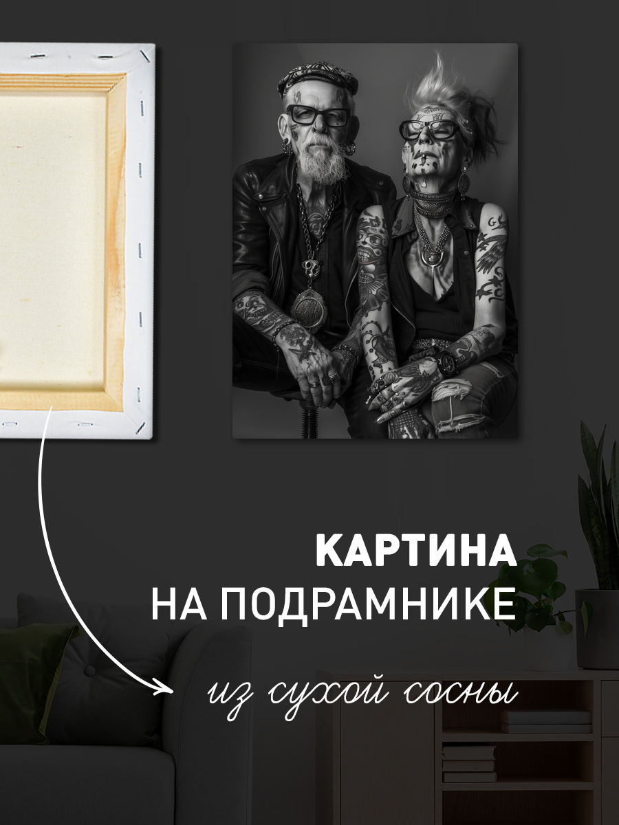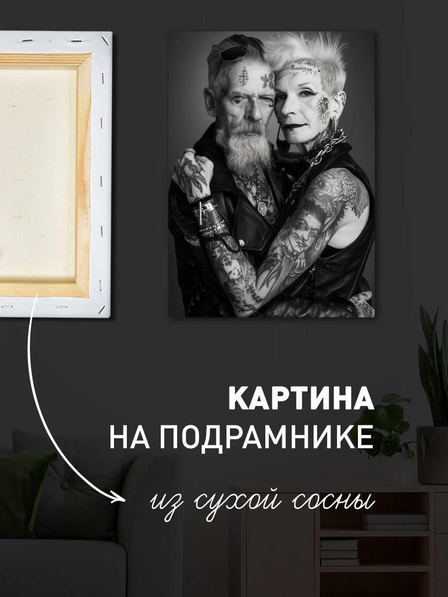 Описание: Картина 50 на 70 "Татуированный дуэт" изображает уникальную пару пожилых людей, обладающих ярко выраженной индивидуальностью. Их тела украшены множеством татуировок, каждая из которых рассказывает свою историю, отражая жизненный путь и опыт. Эта работа выделяется своей контрастной черно-белой палитрой, подчеркивающей детали и текстуры, а также необычным стилем, который навевает мысли о свободе самовыражения и принятии себя. Картина вызывает глубокие эмоции, заставляя зрителя задуматься о времени, любви и уникальности каждого человека. Она может стать центром внимания в любом интерьере, добавляя в пространство нотки бунта и оригинальности. Подходит для современного loft-стиля, а также для мест, где ценится искусство и самовыражение, таких как кафе, бары или выставочные залы. Эта картина не просто украшение, а настоящая история, которая будет вдохновлять и радовать вас и ваших гостей каждый день. Создайте атмосферу, полную энергии и креативности, повесив её на стену в гостиной, кабинете или даже в спальне, где каждый сможет насладиться её уникальной эстетикой и смыслом.