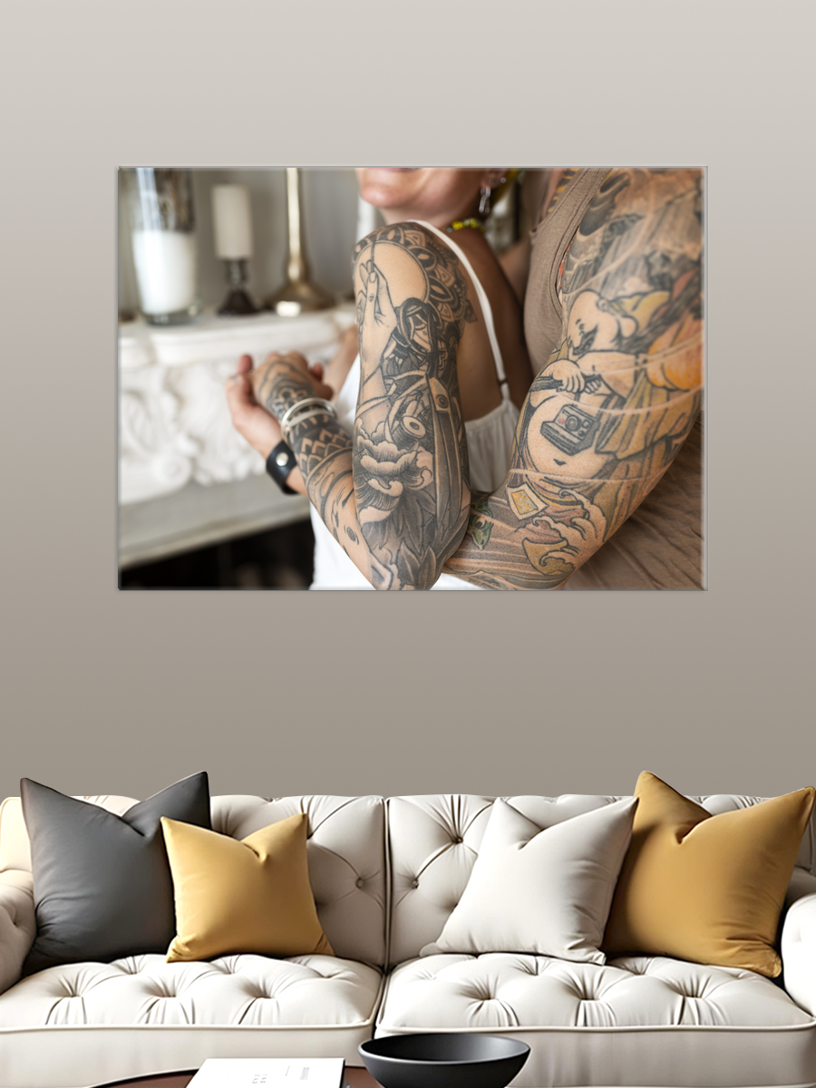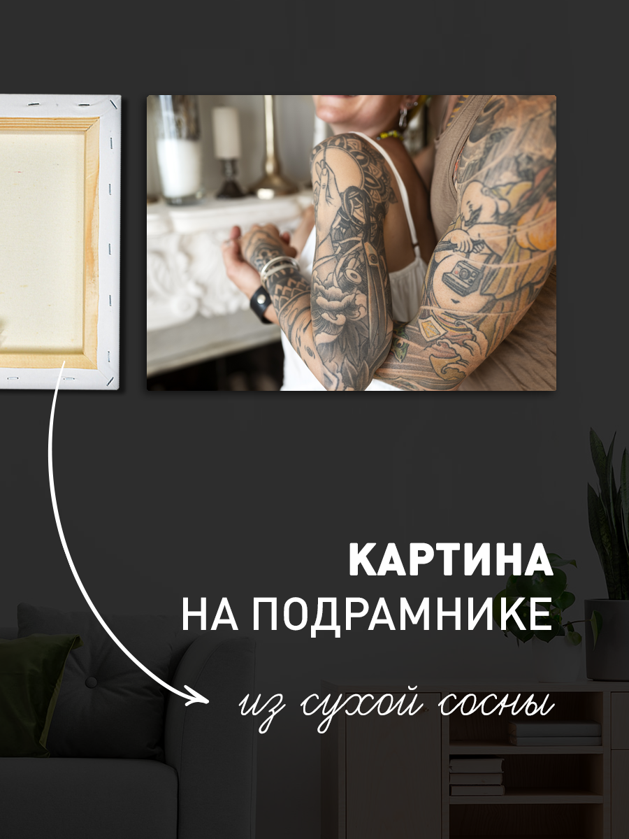 Описание: Картина 50 на 70 "Татуированная гармония" представляет собой завораживающее изображение рук, украшенных яркими татуировками, которые становятся центральным элементом композиции. Основная идея картины заключается в единстве искусства татуировки и человеческой природы, где каждое изображение на коже рассказывает свою историю и передает эмоции. Уникальность этой картины заключается в ее глубоком символизме и способности вызывать интерес к культуре татуировок. Картина вызывает широкий спектр эмоций: от восхищения до размышлений о самовыражении и индивидуальности. Она может стать отличным акцентом в интерьере, привнося в пространство атмосферу творчества и свободы. Вы можете представить ее в гостиной, кабинете или даже в студии, где она будет вдохновлять на новые идеи и заряжать энергией. Эта работа идеально подойдет для интерьеров в современном, индустриальном или даже минималистском стиле, добавляя нотку дерзости и оригинальности. Она станет не только украшением, но и предметом для обсуждения, способным привлечь внимание гостей. Повесьте ее на стену и позвольте ей стать частью вашего уникального пространства, где искусство и жизнь переплетаются.