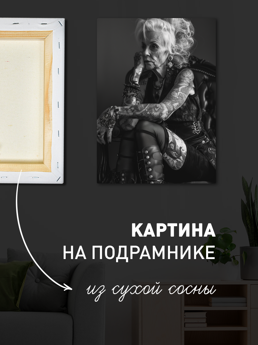 Описание: Картина 50 на 70 "Татуированная мудрость" — это захватывающее произведение искусства, которое запечатлевает уникальную красоту и силу возрастной женщины с впечатляющими татуировками. Она сидит на роскошном кресле, погруженная в глубокие мысли, что символизирует мудрость, накопленную с годами. Эта картина передает уверенность и индивидуальность, приглашая зрителей задуматься о своих собственных историях и переживаниях. Эмоции, которые вызывает данное произведение, варьируются от ностальгии до восхищения. Строгие линии и контрастные оттенки создают атмосферу глубины и серьезности, в то время как яркие татуировки добавляют нотки дерзости и силы. Эта картина станет не только стильным акцентом, но и источником вдохновения для всех, кто будет её видеть. Она идеально подойдет для интерьеров в стилях лофт, бохо или современного минимализма. Повесьте её в гостиной, кабинете или спальне, чтобы создать атмосферу уюта и самовыражения. "Татуированная мудрость" станет не просто элементом декора, а настоящим разговорным произведением, которое привлечет внимание гостей и подарит множество эмоций.