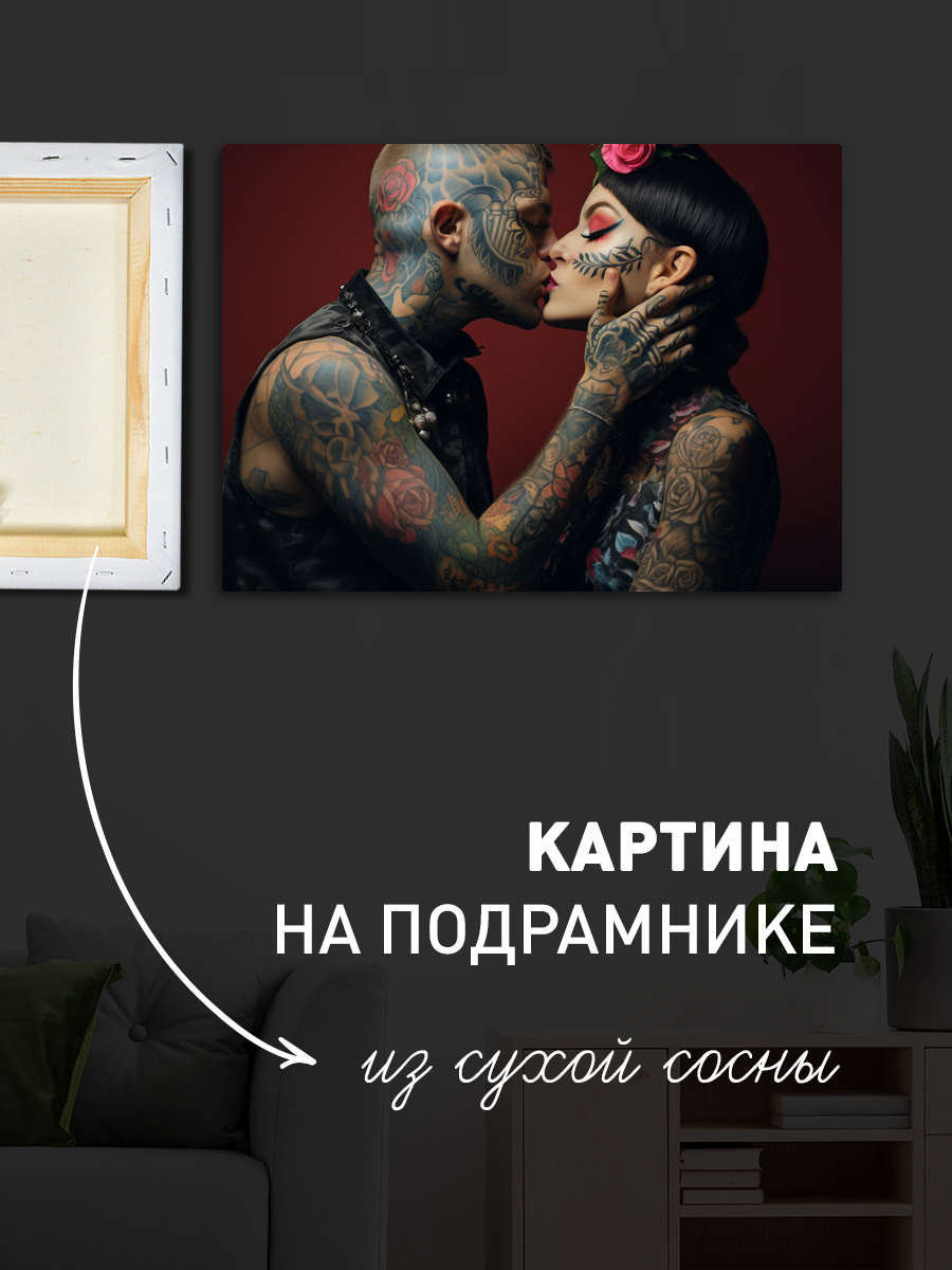 Описание: Картина 50 на 70 "Поцелуй" — это произведение искусства, которое запечатлевает момент нежности и страсти между двумя влюбленными. На полотне изображены два человека, окутанные множеством ярких татуировок, которые подчеркивают их уникальность и индивидуальность. Основная идея картины заключается в выражении глубоких чувств и связи между двумя душами, отражая красоту любви в её самых различных проявлениях. Эта картина вызывает множество эмоций: от восхищения до ностальгии. Она может пробуждать воспоминания о собственных романтических моментах и напоминать о важности любви и страсти в жизни. Яркие цвета и динамичность изображения создают атмосферу тепла и уюта, что помогает зрителю почувствовать себя частью этого волшебного момента. "Поцелуй" станет отличным дополнением к любому интерьеру, будь то современная квартира, уютный дом или стильное кафе. Она прекрасно впишется в спальню, создавая романтичную атмосферу, или в гостиную, добавляя яркий акцент на стену. Картина также будет уместна в студии художника или в салоне, где ценят искусство и индивидуальность. В любом пространстве она привлечет внимание и станет предметом обсуждения, вдохновляя на разговоры о любви, искусстве и жизни.