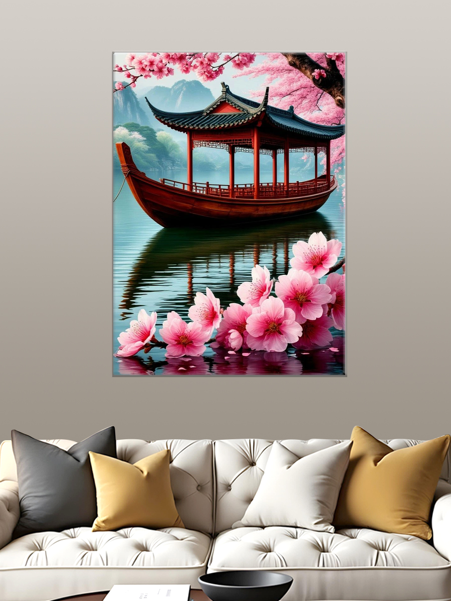 Описание: Картина 50 на 70 "Утренний покой" изображает живописный пейзаж с традиционной китайской лодкой, стоящей на спокойной водной глади, окруженной цветущими сакурами. Этот шедевр переносит зрителя в мир гармонии и умиротворения, где природа и культура переплетаются в идеальном единстве. Яркие оттенки розового и голубого создают атмосферу весны, наполняя пространство теплотой и светом. Эта картина вызывает чувство спокойствия и счастья, напоминая о красоте природы и о том, как важно находить время для отдыха и наслаждения моментами. Каждый взгляд на этот пейзаж пробуждает радость и вдохновение, словно вы находитесь в самом сердце этого волшебного места. Идеально подходит для интерьеров в восточном или современном стиле, картина станет ярким акцентом в гостиной, спальне или офисе. Она прекрасно дополнит любое пространство, создавая уютную атмосферу и подчеркивая индивидуальность вашего интерьера. Разместив её на стене, вы не только преобразите комнату, но и добавите в неё нотку спокойствия и красоты.
