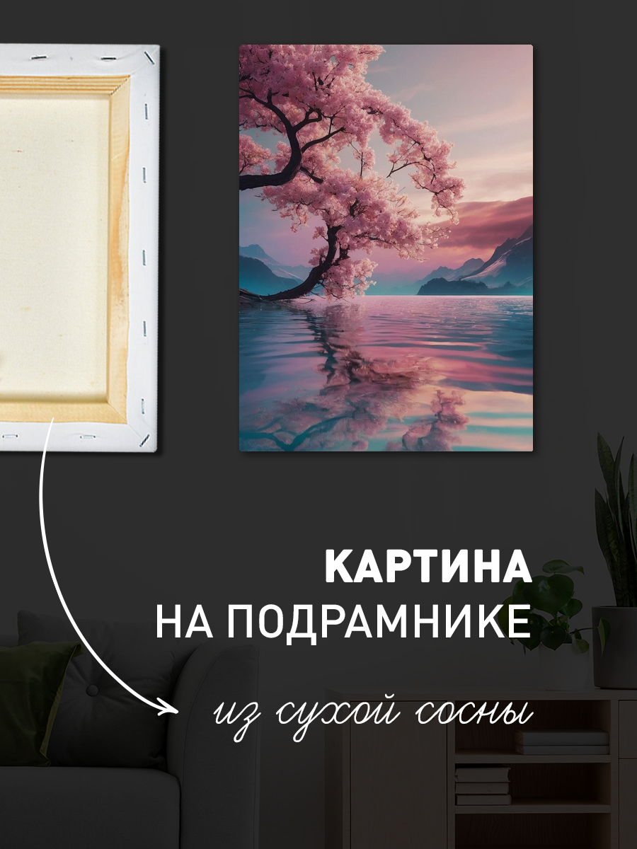 Описание: Картина 50 на 70 "Цветы сакуры на воде" - это великолепное произведение искусства, которое запечатлевает нежную красоту цветущей сакуры, свисающей над спокойной водной гладью. Основная идея картины - передать гармонию природы и её умиротворяющую силу. Уникальность этого изображения заключается в детализированной проработке цветов и отражений, которые создают ощущение глубины и живости. Картина вызывает положительные эмоции и наполняет пространство теплом и спокойствием. Яркие розовые цветы на фоне голубой воды создают атмосферу весны и романтики, вызывая у зрителя чувство радости и умиротворения. Эта работа станет прекрасным акцентом в любом интерьере, добавляя нотки свежести и естественной красоты. Она идеально впишется в гостиные, спальни, кабинеты и даже в офисные пространства, создавая уютную и вдохновляющую атмосферу. Разместите её на стене над диваном, в уголке отдыха или в офисе, чтобы каждый раз, взглянув на неё, ощущать прилив положительной энергии и вдохновения. Эта картина не просто украшение, а источник вдохновения и спокойствия, который будет радовать вас и ваших близких.