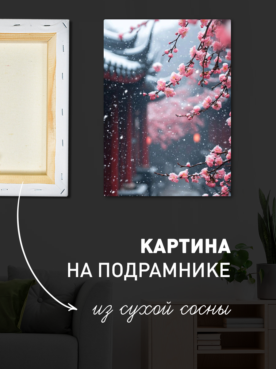 Описание: Картина 50 на 70 "Цветы в снежном покрове" — это удивительное произведение искусства, которое переносит зрителя в волшебный мир зимнего пейзажа, где цветущие вишни контрастируют с холодным снежным фоном. На картине изображены нежные розовые цветы, покрытые снежинками, создавая атмосферу нежности и спокойствия. Основная идея картины заключается в гармонии природы, где зимняя стужа встречается с весенним цветением, символизируя надежду и обновление. Эта картина вызывает теплые чувства и умиротворение, погружая в мечтательное состояние. Она напоминает о том, что даже в самые холодные времена жизнь продолжает цвести и радовать нас. Ваша комната наполнится светом и позитивной энергией, благодаря этому произведению искусства. Идеально подойдет для оформления гостиной, спальни или кабинета, добавляя уют и стиль в любое пространство. Вы можете повесить её на стену над диваном, кроватью или рабочим столом — везде она станет центром внимания и вызовет восхищение у гостей. Эта картина не просто украшение, а источник вдохновения и хорошего настроения, который будет радовать вас каждый день.