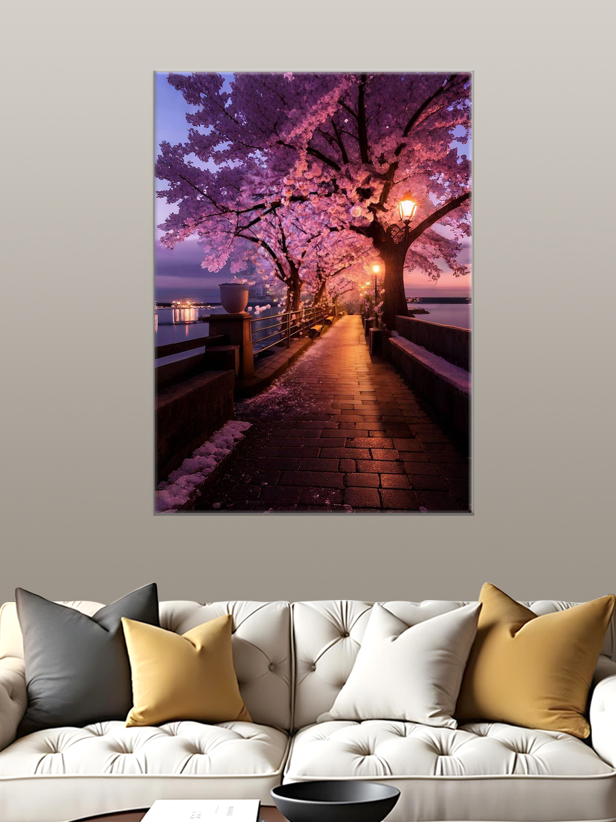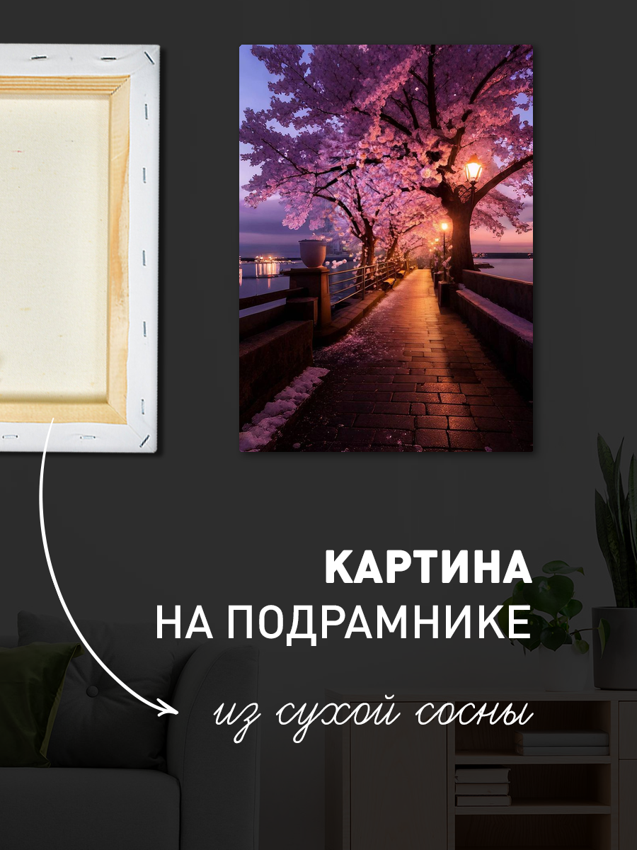 Описание: Картина 50 на 70 "Сакура в вечернем свете" представляет собой завораживающий пейзаж, где цветущие вишни ярко-розового цвета обрамляют спокойную набережную. Вечернее небо, залитое мягким голубым и фиолетовым светом, создает атмосферу умиротворения и красоты. Уникальность этого произведения заключается в его способности передать мгновение волшебства, когда природа и искусство сливаются воедино. Эта картина вызывает множество положительных эмоций: ощущение спокойствия, гармонии и близости к природе. Каждый взгляд на неё способен перенести вас в тихий уголок, где время останавливается, а заботы остаются позади. Она напоминает о том, как важно ценить красоту окружающего мира и находить в нём моменты радости. Картина отлично подойдет для различных стилей интерьера: от современного минимализма до уютного скандинавского. Она станет прекрасным акцентом в гостиной, спальне или даже офисе, добавляя в пространство нотки романтики и спокойствия. Повесьте её над диваном или в уголке для чтения, и она обязательно станет центром притяжения взглядов и обсуждений. "Сакура в вечернем свете" – это не просто картина, это приглашение в мир красоты и вдохновения.