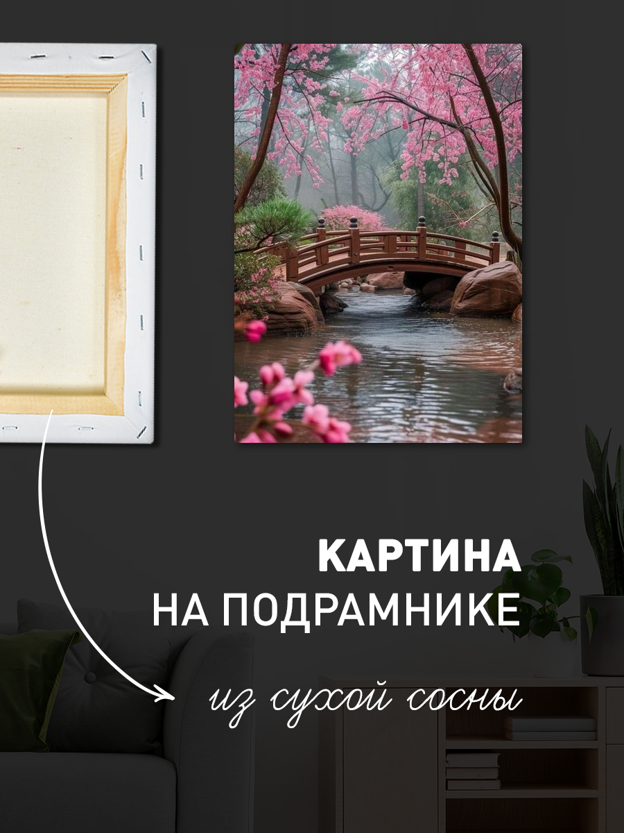 Описание: Картина 50 на 70 "Весна в цветах" изображает живописный пейзаж, наполненный яркими цветами сакуры, которые окутывают мост и спокойную воду реки. Уникальность этой картины заключается в её способности передать атмосферу весны и умиротворения, что делает её идеальным дополнением к вашему интерьеру. На картине яркий розовый цвет цветущих деревьев создает ощущение радости и свежести, а голубое небо и зелёные оттенки воды добавляют гармонии и спокойствия. Эта работа вызывает теплые эмоции, напоминая о тихих весенних днях, когда природа пробуждается к жизни. Картина отлично подойдет для оформления гостиной, спальни или кабинета, придавая помещению уют и атмосферу. Она станет ярким акцентом на стене, добавляя в интерьер нотки романтики и вдохновения. Подвесив её на видное место, вы сможете каждый день наслаждаться её красотой и ощущением весны, которое она приносит в ваш дом.