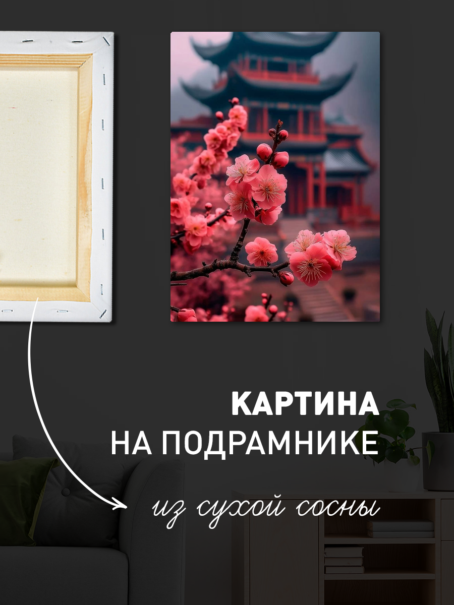Описание: Картина 50 на 70 "Сакура в цвету" погружает зрителя в мир утонченной красоты восточной природы. На холсте изображены нежные цветы сакуры, расцветающие на фоне величественного пагоды, окутанной легким туманом. Это произведение искусства передает атмосферу спокойствия и умиротворения, приглашая вас насладиться моментом тишины и гармонии. Каждый элемент картины выполнен с тщательной детализацией: яркие розовые цветы контрастируют с темными, загадочными оттенками пагоды, создавая идеальный баланс между жизнью и тишиной. Это не просто картина, а окно в мир, где природа и архитектура сливаются в единое целое. Эмоции, которые вызывает это произведение, можно описать как легкость, надежду и вдохновение. "Сакура в цвету" идеально впишется в интерьер, оформленный в восточном стиле, минимализме или даже в классическом направлении. Она станет ярким акцентом в гостиной, спальне или кабинете, добавляя уют и атмосферу уединенности. Повесьте ее над диваном или в уголке, где вы часто проводите время наедине с собой, и дайте ей напомнить о красоте, которая окружает нас каждый день.