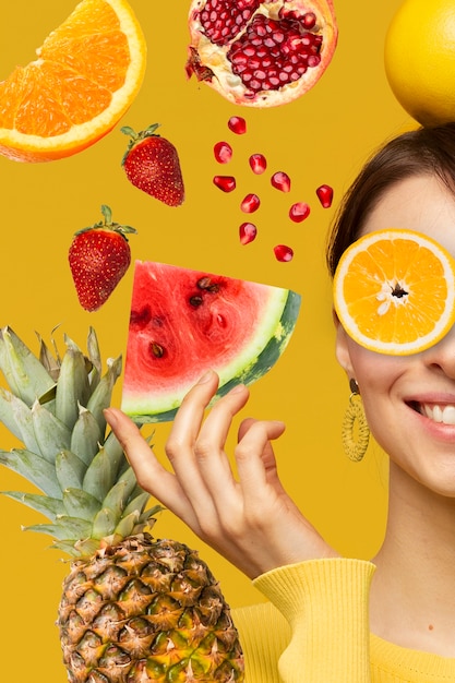 Описание: Картина 50 на 70 "Фруктовая симфония". На этом ярком и жизнерадостном произведении изображена женщина, играющая с фруктами на фоне солнечного желтого цвета. Основная идея картины заключается в праздновании яркости и свежести жизни, которую символизируют фрукты. Уникальность данной работы заключается в её игривом подходе к изображению природы и человеческой радости. Эта картина вызывает положительные эмоции и чувство легкости, напоминая о летних днях, наполненных солнечными лучами и вкусом спелых фруктов. Она способна создать атмосферу радости и вдохновения в любом пространстве. Такое произведение отлично подойдет для кухни, столовой или гостиной, добавляя яркие акценты в интерьер и подчеркивая его индивидуальность. "Фруктовая симфония" станет не только украшением стены, но и источником вдохновения для всех, кто ее увидит.