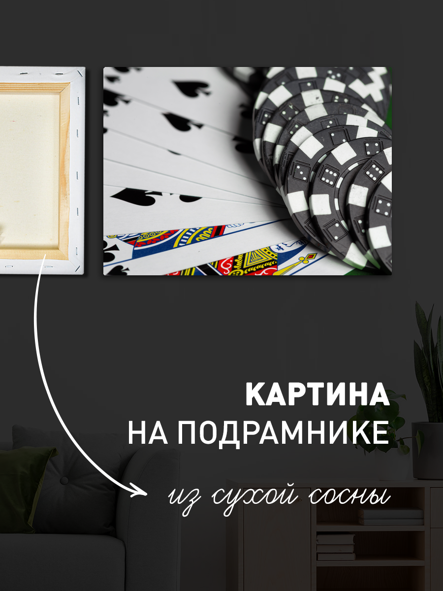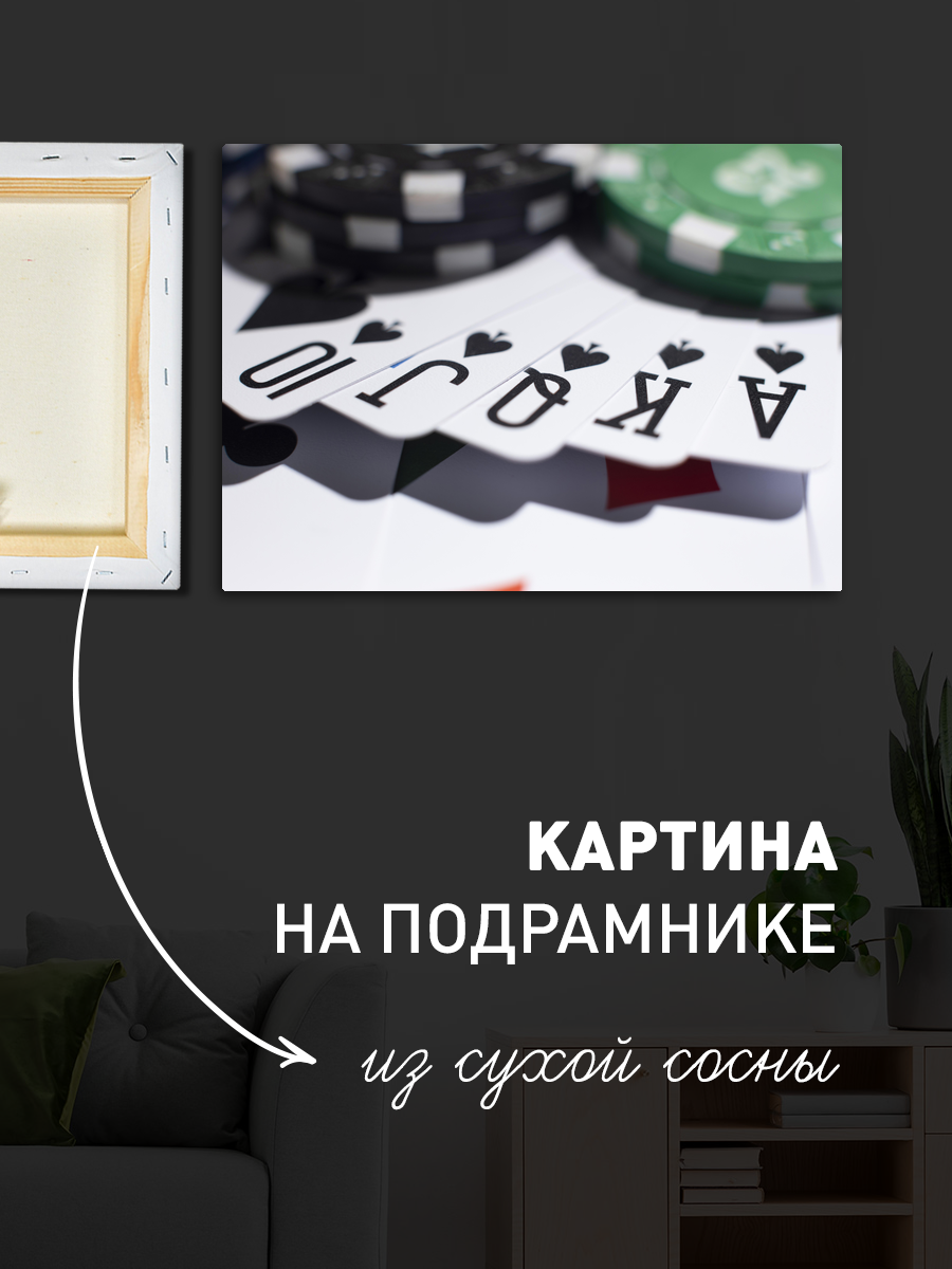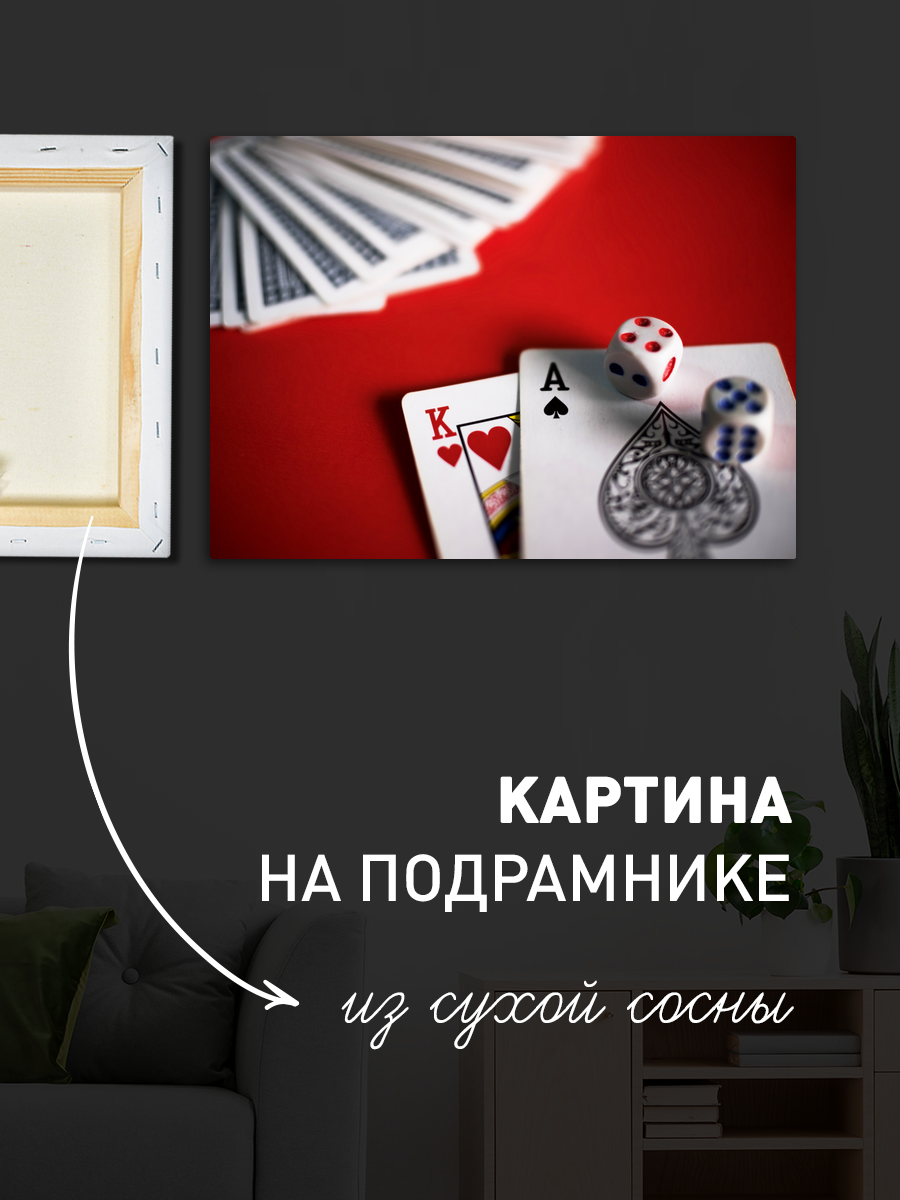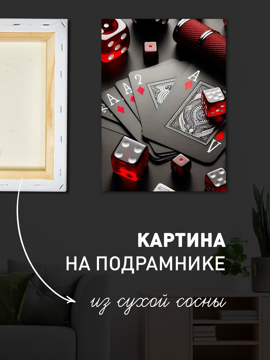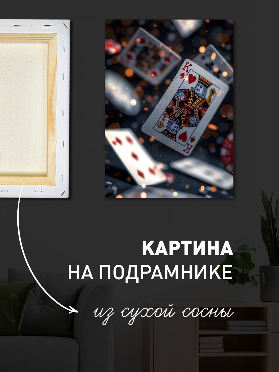 Описание: Картина 50 на 70 "Игра в карты" – это яркое и захватывающее произведение искусства, которое запечатлевает атмосферу азартных игр и стратегического мышления. На полотне изображены игральные карты с королём и тузом, а также кости, которые добавляют элемент случайности и интриги. Эта композиция вызывает чувство волнения и адреналина, приглашающее зрителя окунуться в мир игры и соревнования. Основная идея картины – показать, как азарт и стратегия переплетаются в процессе игры, создавая уникальные моменты, полные эмоций и переживаний. Яркие цвета и контрастные элементы привлекают внимание и создают динамику, что делает эту картину настоящим акцентом в любом интерьере. Эта картина идеально впишется в уютный уголок вашего дома, будь то гостиная, игровая комната или офис. Она станет отличным дополнением для любителей азартных игр и просто ценителей искусства. Благодаря своим ярким цветам и интересной тематике, картина сможет стать не только стильным декором, но и источником вдохновения для обсуждений и размышлений. Добавьте эту картину в своё пространство и позвольте ей напомнить о радости игры и захватывающих моментах, которые она приносит.