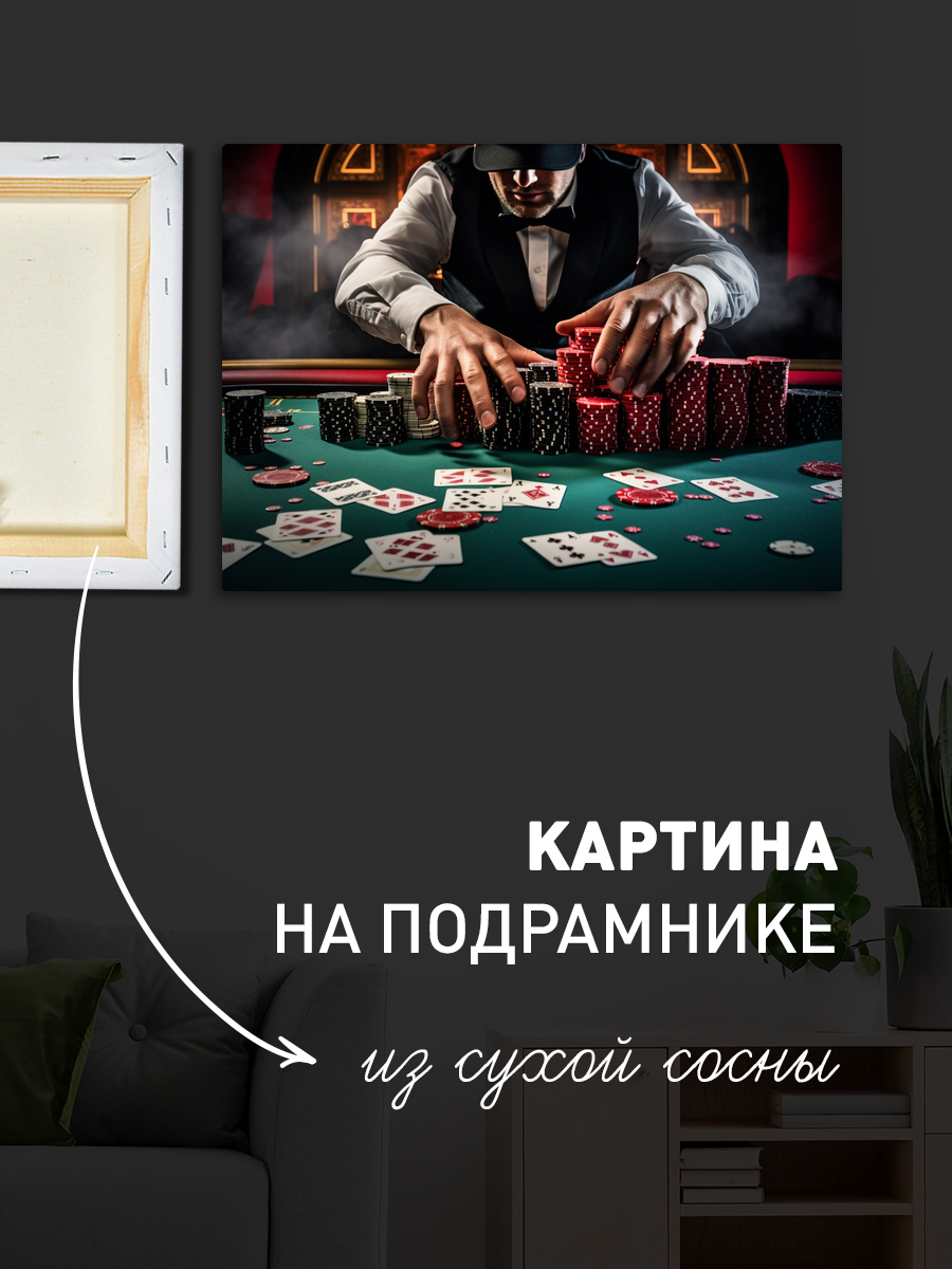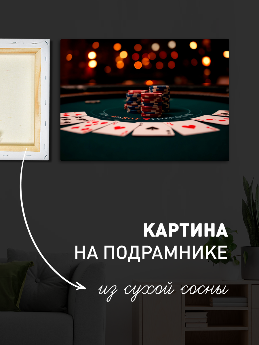 Описание: Картина 50 на 70 "Игровое волнение" изображает захватывающий момент за карточным столом, где играют в покер. На переднем плане располагаются яркие игральные карты, украшенные символами червей и пик, а также тщательно уложенные фишки, которые создают атмосферу азартной игры. Уникальность картины заключается в мастерском сочетании деталей и цветов, которые передают динамику и напряжение игрового процесса. Эта картина вызывает эмоции волнения и ожидания, словно вы сами находитесь за столом, готовые сделать ставку и испытать свою удачу. Она способна вдохновить и привлечь внимание, создавая атмосферу азартного веселья и дружеских встреч. "Игровое волнение" отлично подойдет для интерьера игорной комнаты, кабинета или даже уютного уголка в гостиной. Она станет центром притяжения для любителей азартных игр и просто ценителей яркого искусства. Картина идеально дополнит стильный декор, добавив в пространство нотку игривости и энергии. Разместите её на стене рядом с игровым столом или на полке, чтобы создать атмосферу уюта и веселья в вашем доме.