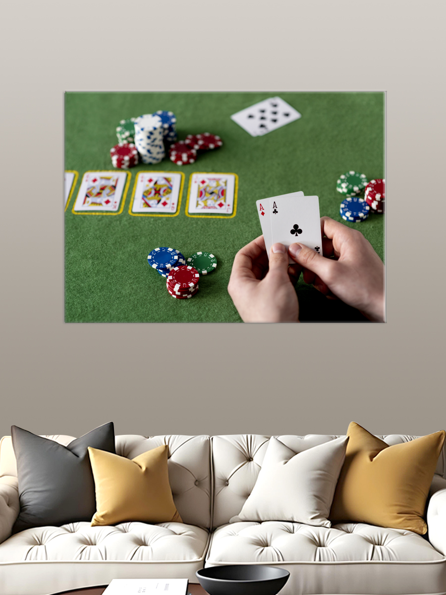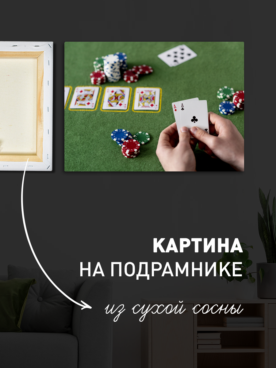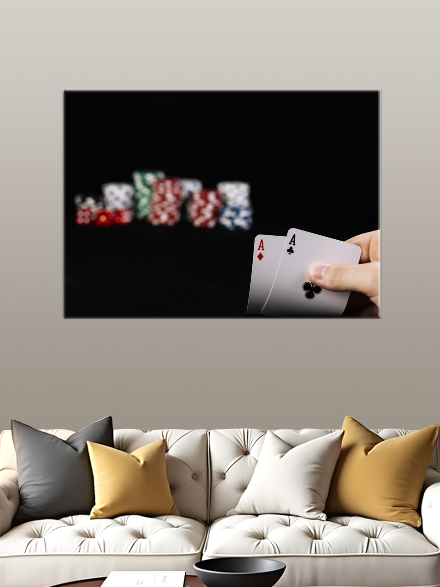 Описание: Картина 50 на 70 'Покерная игра' изображает захватывающий момент в покере, где игрок держит в руках две карты с тузами. На фоне стола, устланного зеленым сукном, виднеются фишки разных цветов, создавая атмосферу азартного и напряженного игрового процесса. Эта картина передает дух соревнования и стратегии, что делает её уникальной и привлекательной для всех любителей покера и азартных игр. Эмоции, которые вызывает данное произведение, — это азарт, напряжение и предвкушение. Взгляд зрителя может задержаться на деталях — блеске фишек и выражении рук игрока, что позволяет почувствовать себя частью игры. Картина словно приглашает на виртуальный стол, где каждое решение может изменить ход событий. Такое произведение станет отличным дополнением для игрового кабинета или домашнего бара, привнося в атмосферу уюта и развлечения. Она также подойдет для офисного пространства, где ценят креативный подход и азарт. Благодаря своему размеру, картина легко впишется в различные интерьеры — от классического до современного, добавляя яркий акцент в любое помещение. Украсив стену, она станет прекрасным поводом для обсуждений и воспоминаний о незабываемых игровых моментах.