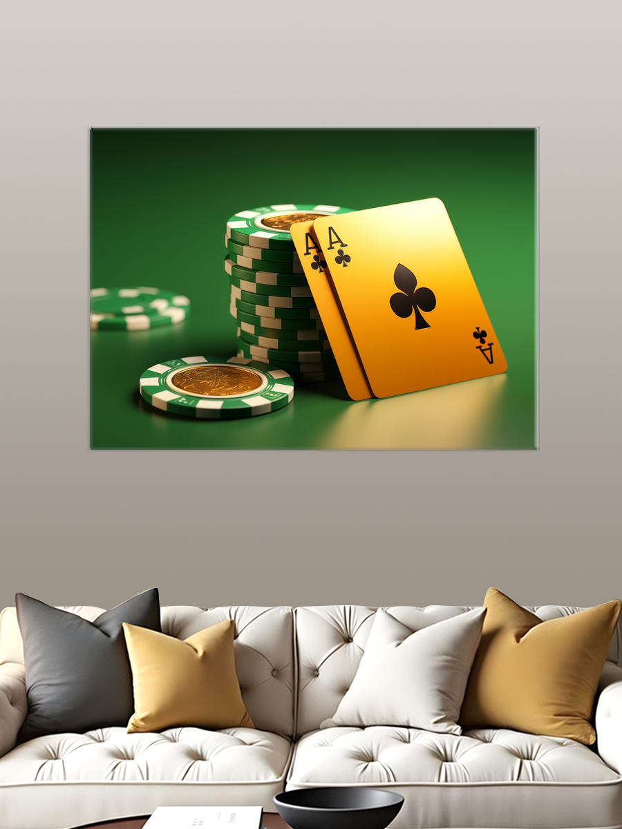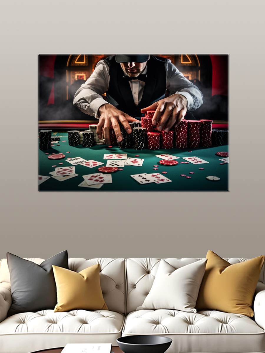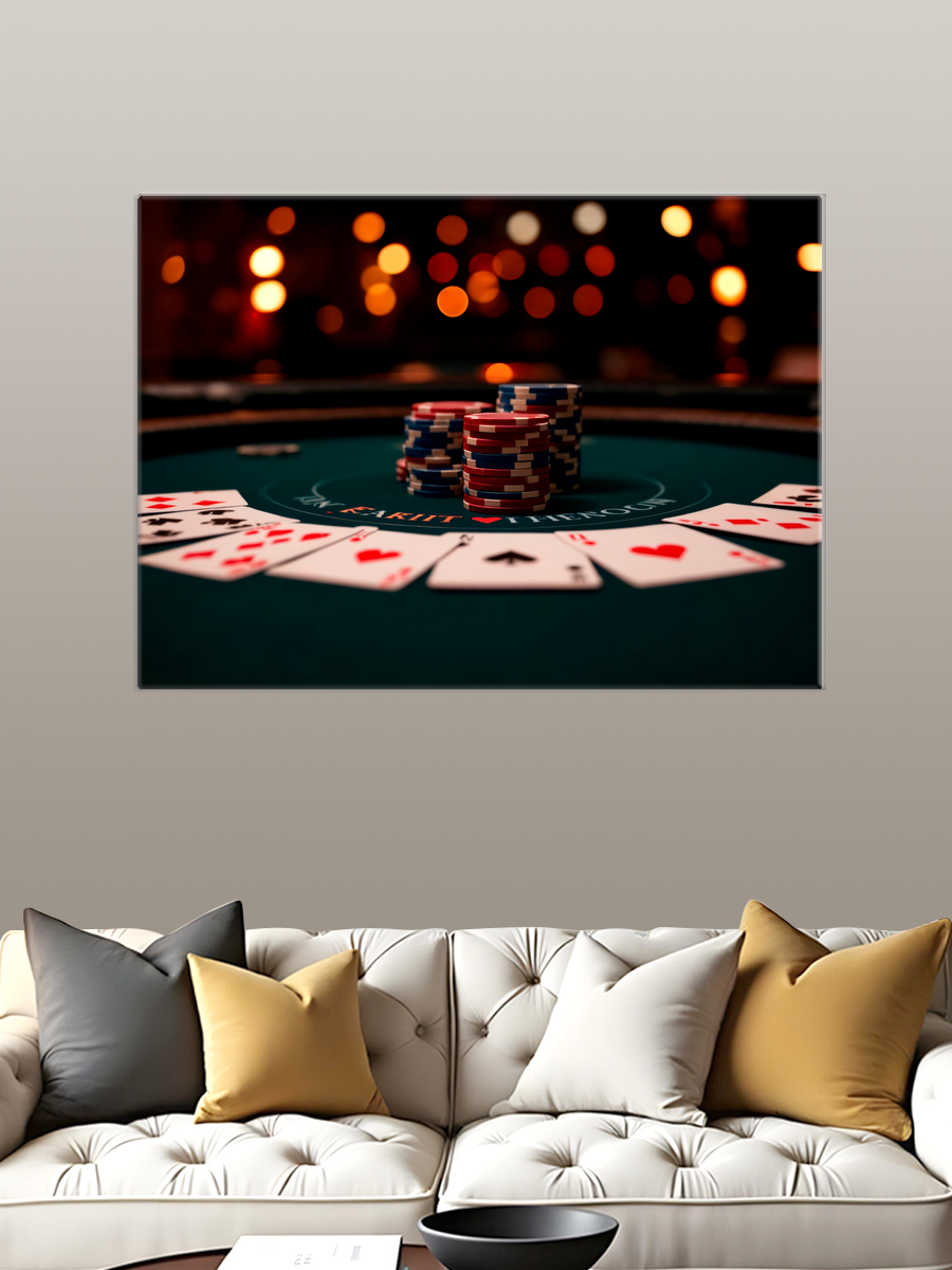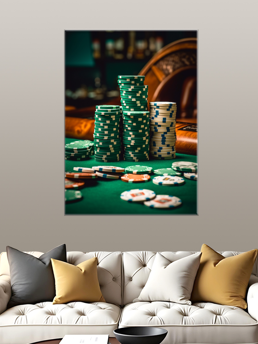 Описание: Картина 50 на 70 'Покерная игра' изображает захватывающий момент в покере, где игрок держит в руках две карты с тузами. На фоне стола, устланного зеленым сукном, виднеются фишки разных цветов, создавая атмосферу азартного и напряженного игрового процесса. Эта картина передает дух соревнования и стратегии, что делает её уникальной и привлекательной для всех любителей покера и азартных игр. Эмоции, которые вызывает данное произведение, — это азарт, напряжение и предвкушение. Взгляд зрителя может задержаться на деталях — блеске фишек и выражении рук игрока, что позволяет почувствовать себя частью игры. Картина словно приглашает на виртуальный стол, где каждое решение может изменить ход событий. Такое произведение станет отличным дополнением для игрового кабинета или домашнего бара, привнося в атмосферу уюта и развлечения. Она также подойдет для офисного пространства, где ценят креативный подход и азарт. Благодаря своему размеру, картина легко впишется в различные интерьеры — от классического до современного, добавляя яркий акцент в любое помещение. Украсив стену, она станет прекрасным поводом для обсуждений и воспоминаний о незабываемых игровых моментах.