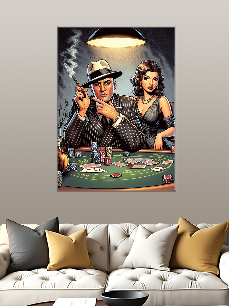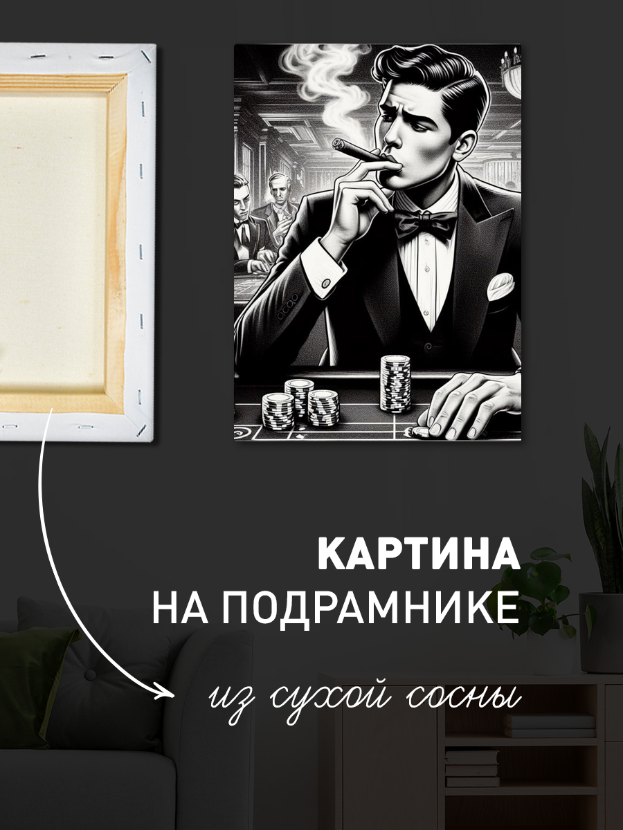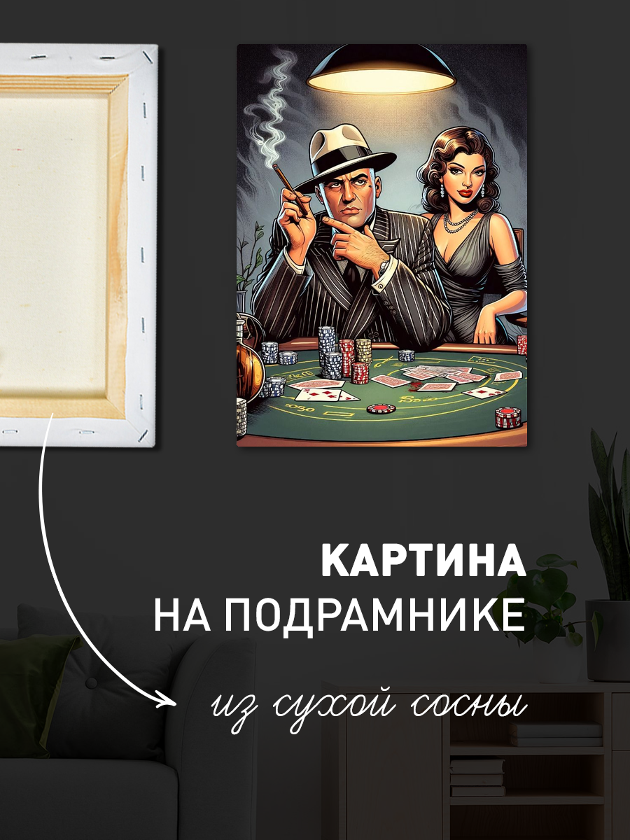 Описание: Картина 50 на 70 "Игра в покер" представляет собой завораживающее изображение, погружающее зрителя в атмосферу азартных игр 1930-х годов. На картине изображен харизматичный мужчина в строгом черном костюме и белой шляпе, задумчиво держащий сигару, и элегантная женщина в вечернем платье, создающая неповторимый дуэт. Основная идея картины — передать ощущение напряжения и интриги, присущие играм на деньги, а также атмосферу романтики и стиля тех времен. Эта картина вызывает множество эмоций: от ностальгии до восхищения. Она словно переносит нас в мир, где каждый ход может изменить судьбу. Воображение рисует образы высоких ставок, смелых решений и загадочных взоров. Картина станет отличным акцентом в вашем интерьере, придавая ему особый стиль и характер. Идеально подойдет для гостиных, кабинетов или игровых комнат, добавляя нотки элегантности и загадочности. Вы можете разместить её над камином, в зоне отдыха или в домашнем баре, где она создаст атмосферу уюта и интриги. "Игра в покер" — это не просто картина, это произведение искусства, которое будет вдохновлять и радовать вас и ваших гостей.