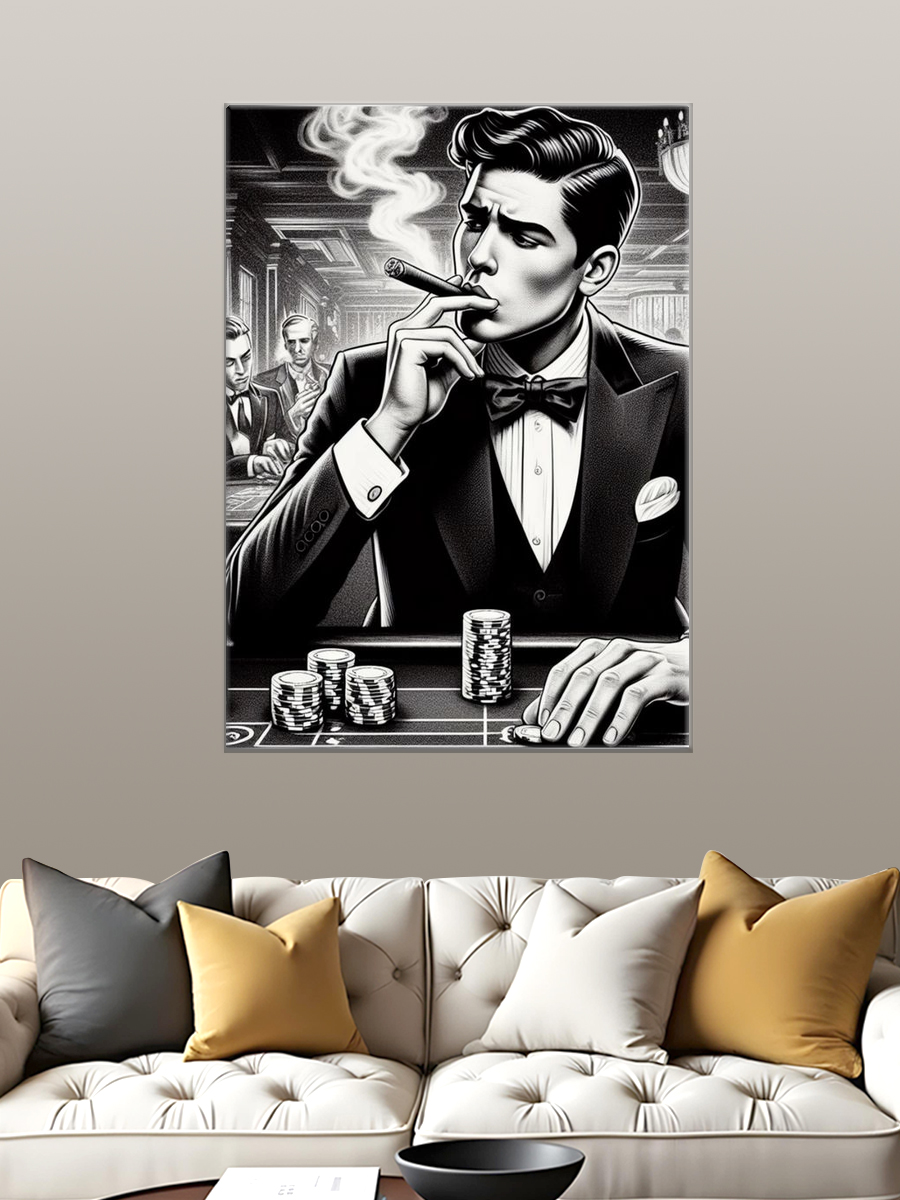 Описание: Картина 50 на 70 "Игра на удачу" представляет собой захватывающее изображение азартной игры в роскошном казино. На картине мы видим элегантного молодого человека в смокинге, который сосредоточенно курит сигару, окруженного атмосферой напряжения и ожидания. Его уверенность и стиль подчеркиваются контрастом с другими игроками, которые также одеты в классические костюмы, создавая ощущение стиля и утонченности. Эта картина вызывает сильные эмоции: азарт, риск и волнение, напоминая о том, как можно наслаждаться жизнью и принимать вызовы судьбы. Она станет не только ярким акцентом в любом интерьере, но и символом стремления к успеху и уверенности в себе. "Игра на удачу" идеально подойдет для установки в игровых комнатах, офисах или гостиных, добавляя нотки роскоши и экстравагантности. Ее можно повесить на стену рядом с уютным креслом для чтения или в барной зоне, чтобы создать атмосферу расслабления и стиля. Эта картина станет не только украшением вашего пространства, но и источником вдохновения для всех, кто оценит ее уникальность и смысл.
