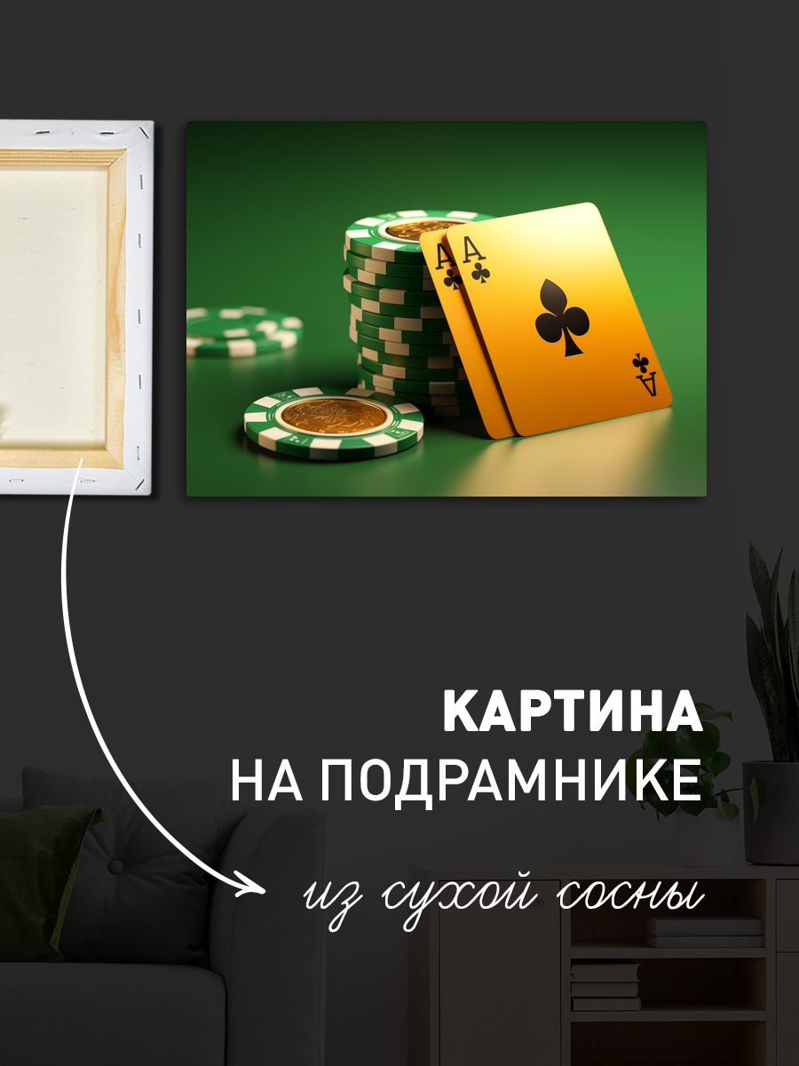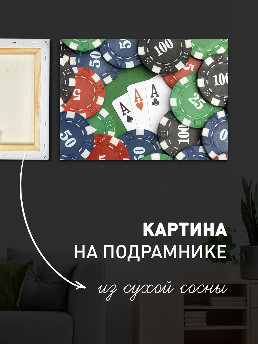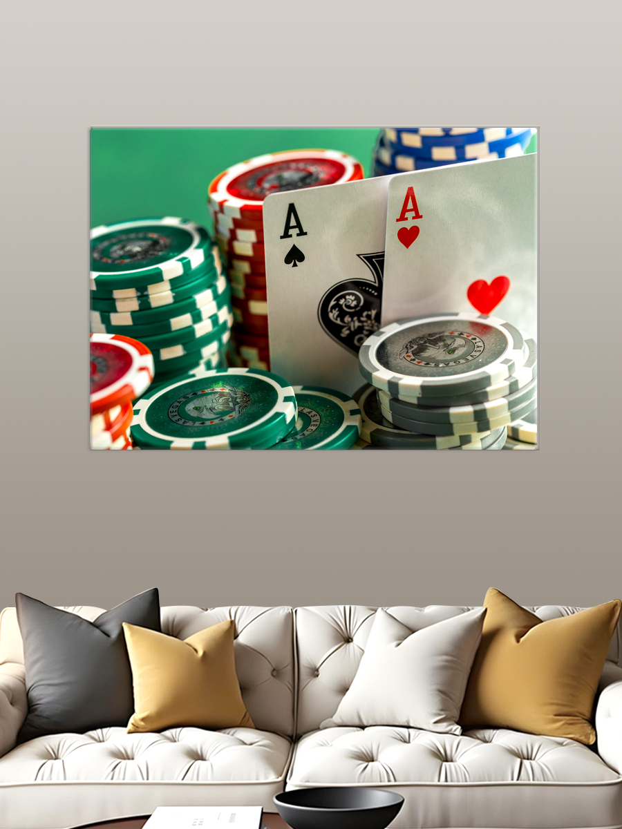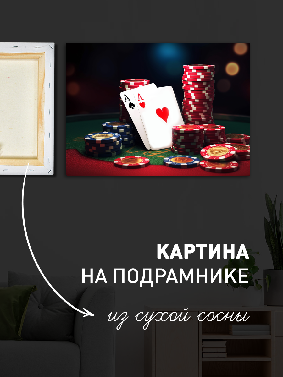 Описание: Картина 50 на 70 "Покерные страсти" - это яркое и захватывающее изображение, которое погружает зрителя в мир азартных игр. На картине изображены две карты Тузов, окруженные стопками фишек, создавая атмосферу напряжения и ожидания. Уникальность этой работы заключается в детальной проработке элементов, которые передают динамику и азарт игрового процесса. Эта картина вызывает широкий спектр эмоций: от волнения и азартного ожидания до ностальгии по играм с друзьями. Она способна создать в вашем пространстве атмосферу дружеских встреч и увлекательных вечеров. Каждый раз, глядя на неё, вы будете ощущать прилив адреналина и желание сыграть партию в покер. "Покерные страсти" отлично подойдет для интерьеров в стиле лофт, современного минимализма или даже классики. Она будет прекрасно смотреться в игровой комнате, баре или даже в кабинете, добавляя нотку игривости и стиля. Повесьте её на стену, и она станет центральным элементом вашего интерьера, привлекая внимание гостей и создавая уникальную атмосферу.