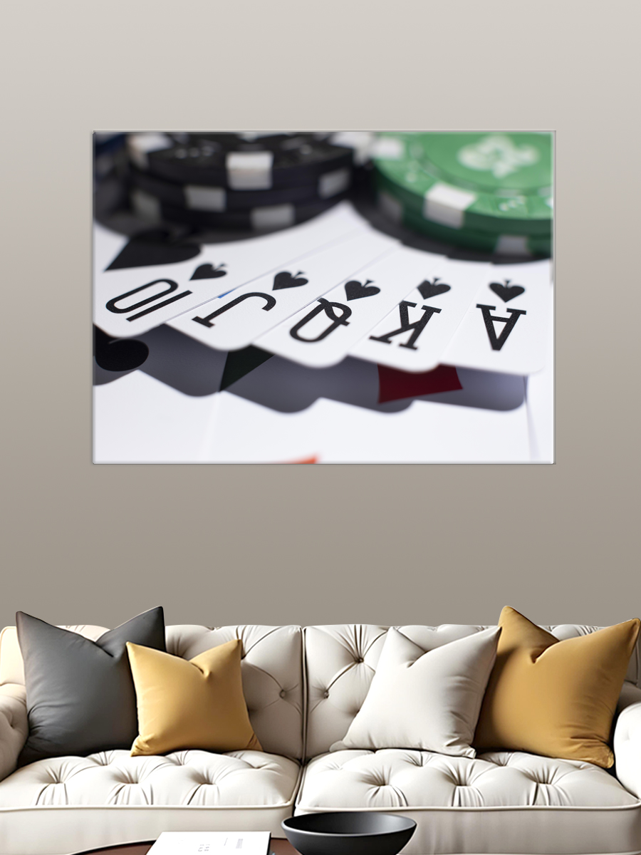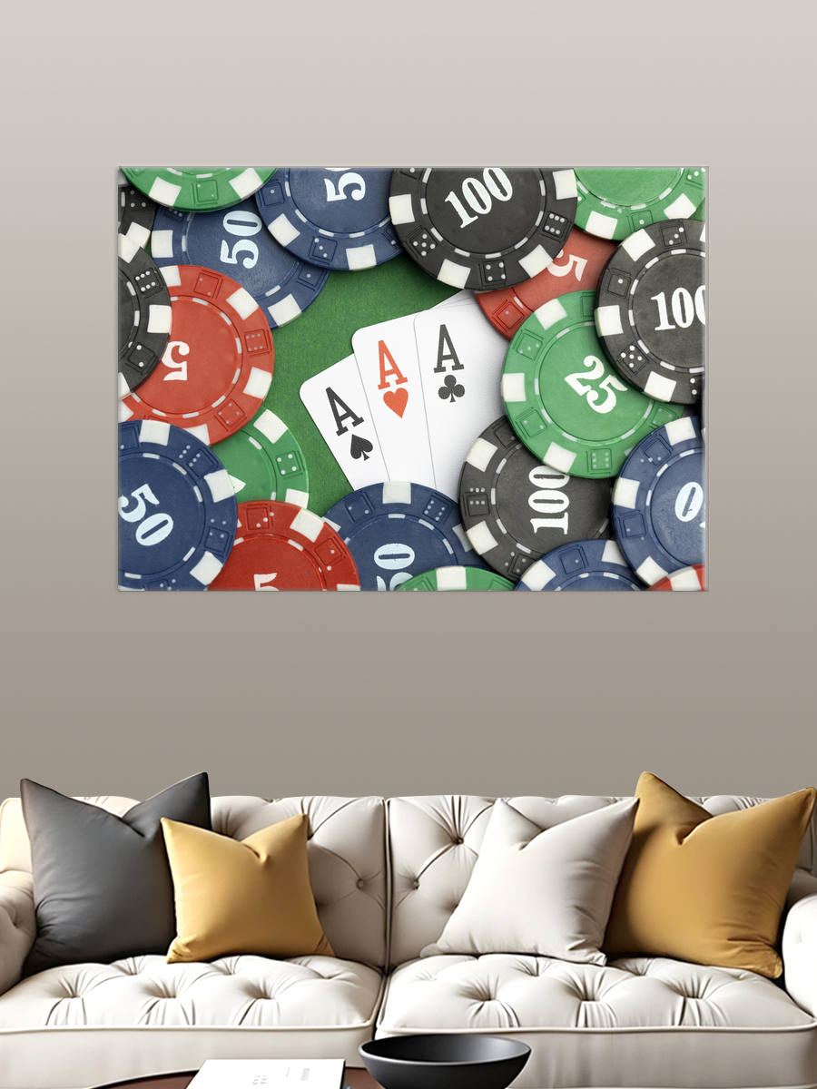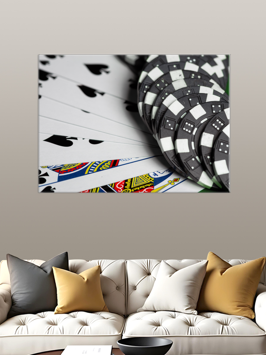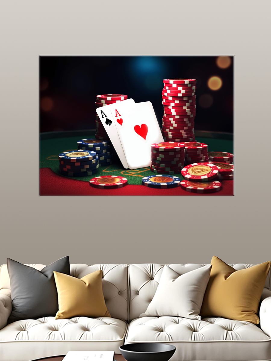 Описание: Картина 50 на 70 "Покерные страсти" - это яркое и захватывающее изображение, которое погружает зрителя в мир азартных игр. На картине изображены две карты Тузов, окруженные стопками фишек, создавая атмосферу напряжения и ожидания. Уникальность этой работы заключается в детальной проработке элементов, которые передают динамику и азарт игрового процесса. Эта картина вызывает широкий спектр эмоций: от волнения и азартного ожидания до ностальгии по играм с друзьями. Она способна создать в вашем пространстве атмосферу дружеских встреч и увлекательных вечеров. Каждый раз, глядя на неё, вы будете ощущать прилив адреналина и желание сыграть партию в покер. "Покерные страсти" отлично подойдет для интерьеров в стиле лофт, современного минимализма или даже классики. Она будет прекрасно смотреться в игровой комнате, баре или даже в кабинете, добавляя нотку игривости и стиля. Повесьте её на стену, и она станет центральным элементом вашего интерьера, привлекая внимание гостей и создавая уникальную атмосферу.