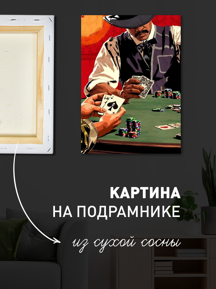 Описание: Картина 50 на 70 "Покерное противостояние" изображает захватывающую сцену с игроками в покер, погруженными в напряженный азарт игры. На переднем плане мы видим руки двух игроков: один из них держит карты, а другой внимательно следит за соперником, что создает атмосферу напряжения и ожидания. Фон картины выполнен в ярких красных и оранжевых тонах, что подчеркивает энергетику момента. Уникальность этой картины заключается в ее способности передать дух Дикого Запада и азартные игры, которые были важной частью той эпохи. Она вызывает у зрителя чувство волнения и предвкушения, погружая его в мир старинных казино. Эта картина станет отличным дополнением для интерьера в стиле лофт, кабинета или игровой комнаты, добавляя в пространство нотки классического шика и приключений. Она также будет прекрасным подарком для любителей покера и истории Дикого Запада. Станьте обладателем этого уникального произведения искусства и дайте своему пространству новую жизнь.