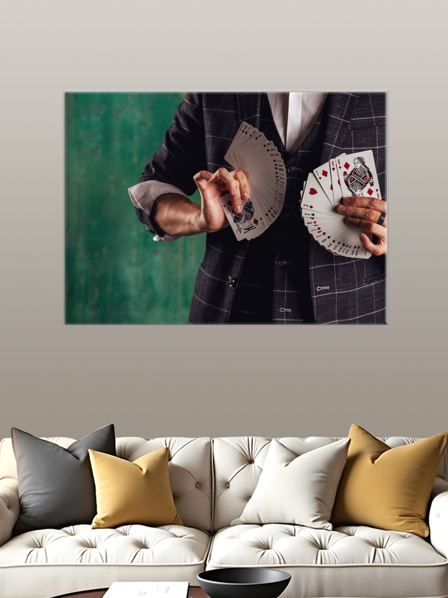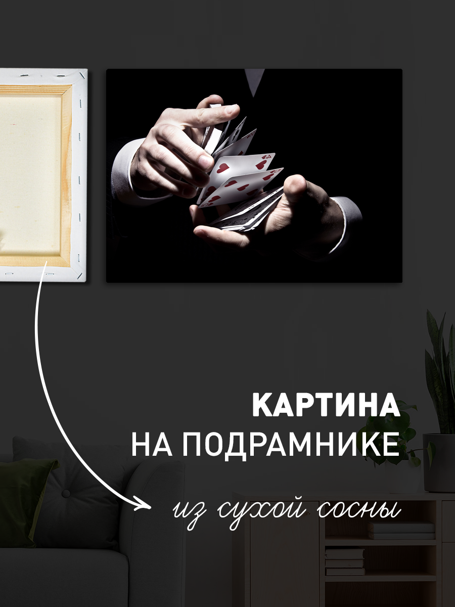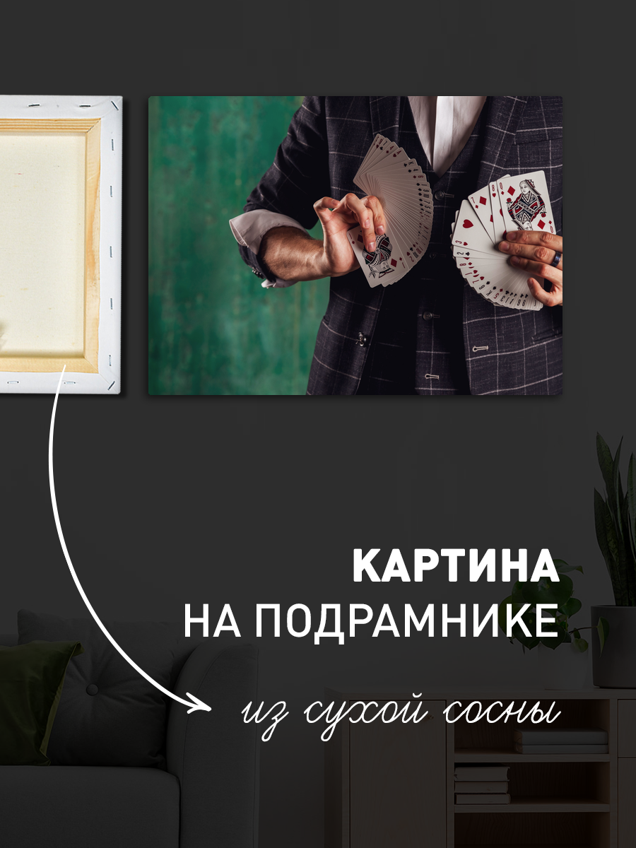Описание: Картина 50 на 70 "Искусство карточного фокуса" - это захватывающее изображение, которое передает магию и таинственность игры в карты. На картине изображены ловкие руки, которые мастерски манипулируют картами, создавая ощущение динамики и напряжения. Основная идея картины заключается в праздновании искусства магии и фокусов, заставляя зрителя задуматься о том, что скрыто за каждым движением. Эта работа вызывает широкий спектр эмоций: от восхищения до любопытства, ведь каждый может представить себя в роли зрителя на волнующем шоу. Картина словно приглашает вас стать частью этого уникального мира, где всё возможно. "Искусство карточного фокуса" станет отличным дополнением для современного интерьера, будь то гостиная, кабинет или даже игровая комната. Она отлично впишется в стиль лофт или минимализм, добавляя нотки элегантности и загадки. Повесьте её на стену, и она станет ярким акцентом, который привлечет внимание гостей и станет предметом обсуждений. Эта картина не только украсит ваше пространство, но и создаст атмосферу волшебства и увлечения.