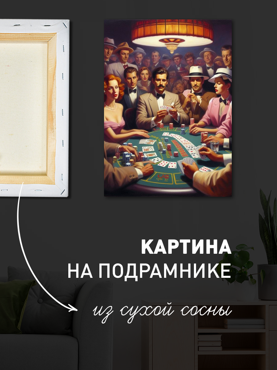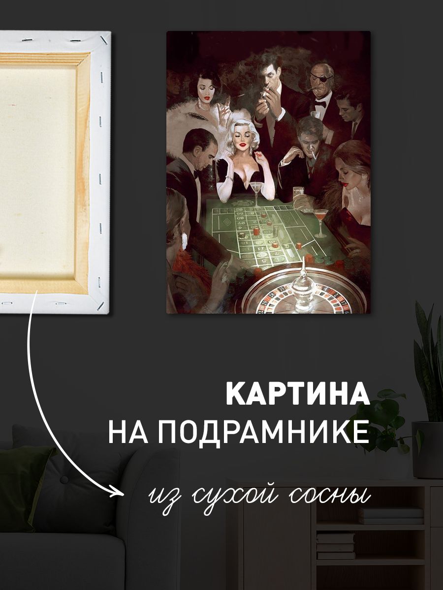 Описание: Картина 50 на 70 "Игры в казино" погружает зрителя в атмосферу азартных игр 50-х годов. На ней изображена захватывающая сцена, где игроки, одетые в стильные костюмы и платья, собрались вокруг игорного стола, полным фишек и карт. Эта картина передает дух времени, когда азарт и стиль шли рука об руку, создавая уникальную атмосферу. Эмоции, которые вызывает эта работа, варьируются от напряжения и ожидания до ностальгии по ушедшим эпохам. Яркие цвета и динамика сценки притягивают взгляд, вызывая желание стать частью этого мира. Эта картина не просто украшение, она рассказывает историю, наполняя пространство энергией и шармом. Она идеально впишется в интерьер в стиле ретро, а также станет изюминкой современного минимализма, добавляя нотку элегантности и загадочности. Можно разместить её в гостиной, кабинете или даже в баре, где она будет служить отличным фоном для встреч с друзьями. Привнесите в своё пространство частичку истории и атмосферу непринужденного веселья с этой уникальной картиной.