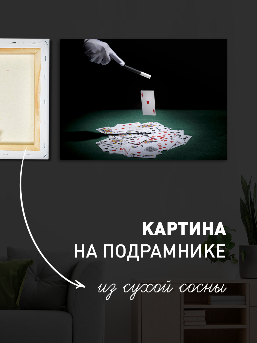 Описание: Картина 50 на 70 "Иллюзия магии" представляет собой захватывающее изображение, на котором волшебная рука с тростью вызывает к жизни игральную карту с сердцем. Сложные детали карт, яркие цвета и контрастные тени создают эффект загадки и интриги, погружая зрителя в мир магии и фокусов. Основная идея картины — это волшебство, которое может быть найдено в повседневной жизни, и она уникальна тем, что сочетает в себе элементы игры и искусства. Эта картина вызывает в зрителе чувство удивления и восхищения, наполняя пространство энергией и игривостью. Она может стать центром внимания в любой комнате, напоминая о том, что магия существует вокруг нас. Идеально подойдет для современного интерьера, этой картиной можно украсить гостиную, кабинет или даже детскую комнату. Она прекрасно дополнит атмосферу креативного пространства, подчеркнув индивидуальность владельца и создавая уютную обстановку для вдохновения и отдыха. "Иллюзия магии" станет не только стильным элементом декора, но и источником позитива, придавая вашему дому уникальный характер.