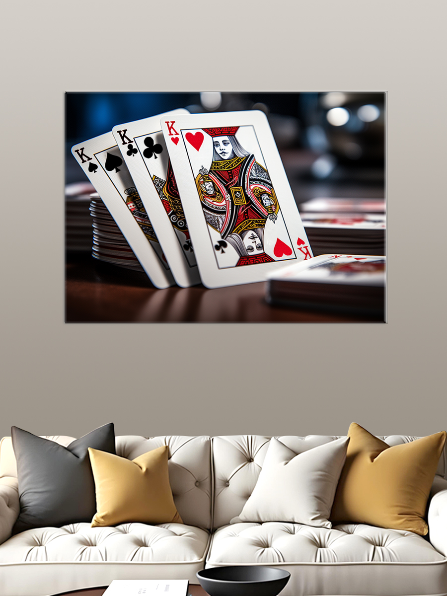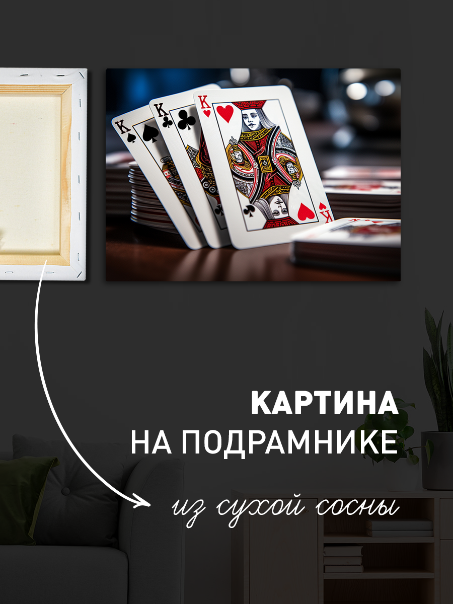 Описание: Картина 50 на 70 "Королевские карты" представляет собой захватывающее изображение игральных карт, на которых изображены короли и королевы в ярких и насыщенных цветах. Основная идея картины заключается в передаче атмосферы азартной игры, интриги и роскоши, что делает её уникальной и привлекательной для ценителей искусства и любителей азартных игр. Эта картина пробуждает в зрителе чувство ностальгии и азартного волнения, позволяя окунуться в мир карточных игр и стратегий. Яркие детали и детализированные изображения персонажей вызывают восхищение и завораживают, создавая атмосферу таинственности и ожидания. Картина идеально впишется в интерьер игровой комнаты, кабинета или даже гостиной, добавляя нотку стиля и индивидуальности. Она станет ярким акцентом на стене, привлекая внимание гостей и создавая уютную атмосферу. Разместив её в своем доме, вы сможете не только украсить пространство, но и создать уникальную атмосферу, наполненную азартом и увлечением.