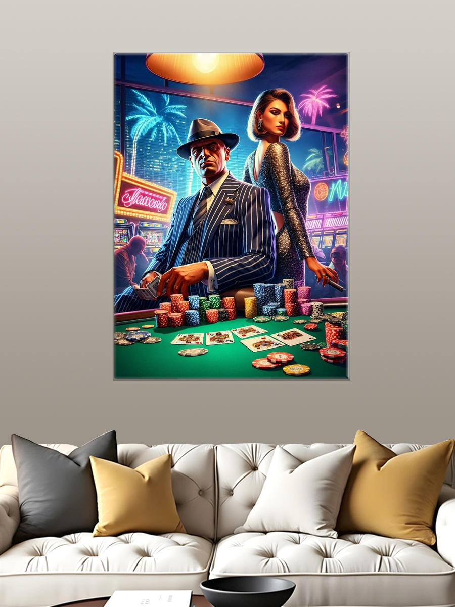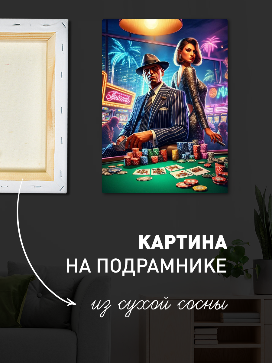 Описание: Картина 50 на 70 "Казино Ночь" — это захватывающее изображение, погружающее в мир ярких огней и азартных игр. На холсте представлены две центральные фигуры: элегантный мужчина в строгом костюме и загадочная женщина в блестящем наряде, которые создают атмосферу роскоши и тайны. Эта картина олицетворяет азарт и напряжение вечернего казино, где каждый момент может стать решающим. Эмоции, которые вызывает эта работа, — это сочетание волнения и ожидания. Яркие цвета и динамичные линии заставляют зрителя почувствовать себя частью этого волнующего мира, где встречаются судьбы и желания. "Казино Ночь" — это не просто картина, а приглашение в мир, полный возможностей и неожиданностей. Эта картина идеально впишется в современный интерьер, добавляя нотки стиля и экстравагантности. Она будет великолепно смотреться в гостиной, создавая уютную атмосферу для вечеров с друзьями, или в кабинете, подчеркивая вашу индивидуальность и вкусовые предпочтения. Также она станет отличным акцентом в баре или клубе, привлекая внимание и создавая уникальную атмосферу. "Казино Ночь" — это не просто произведение искусства, а настоящий фокус для обсуждения и восхищения.